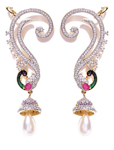 Youbella Gold Plated American Diamond Peacock Earcuff Earrings For Women And Girls