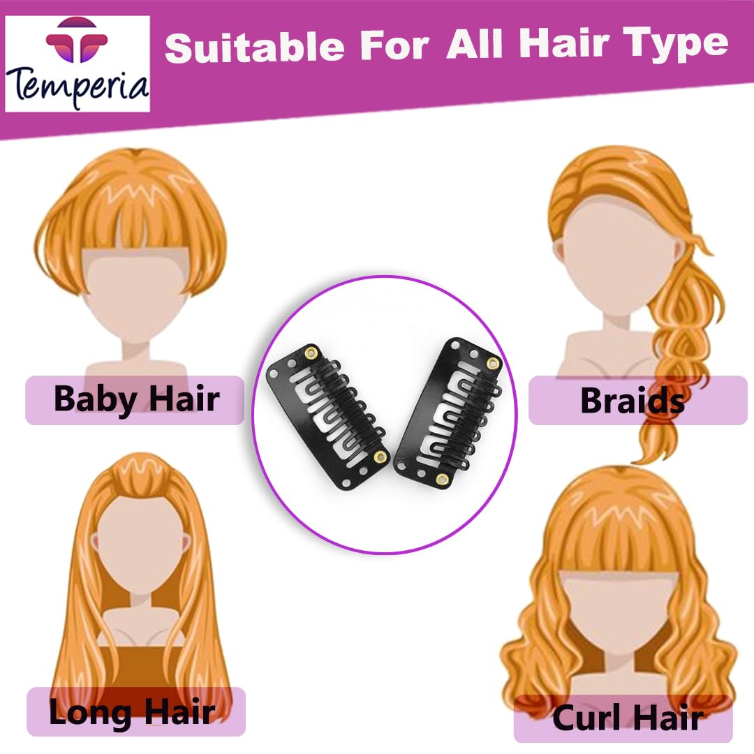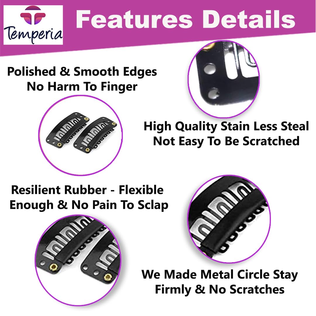 PACKAGE INCLUDES: 36 pcs Hair Extension Snap Clips Each Clip is 3.4 cm Long and 1.6cm Wide COMFORTABLE: The rubber design of the clips help prevent your scalp from getting hurt and prevents friction against your scalp EASY TO USE: Clips are Ergonomically Designed which makes them Easy to handle and Works greatly to secure your Wig/Hair Extensions EASY SEWING: Specially designed for hair extension and wigs with little holes for linking or sewing the wig DURABLE: The clips are made from premium metal which makes them sturdy and Durable