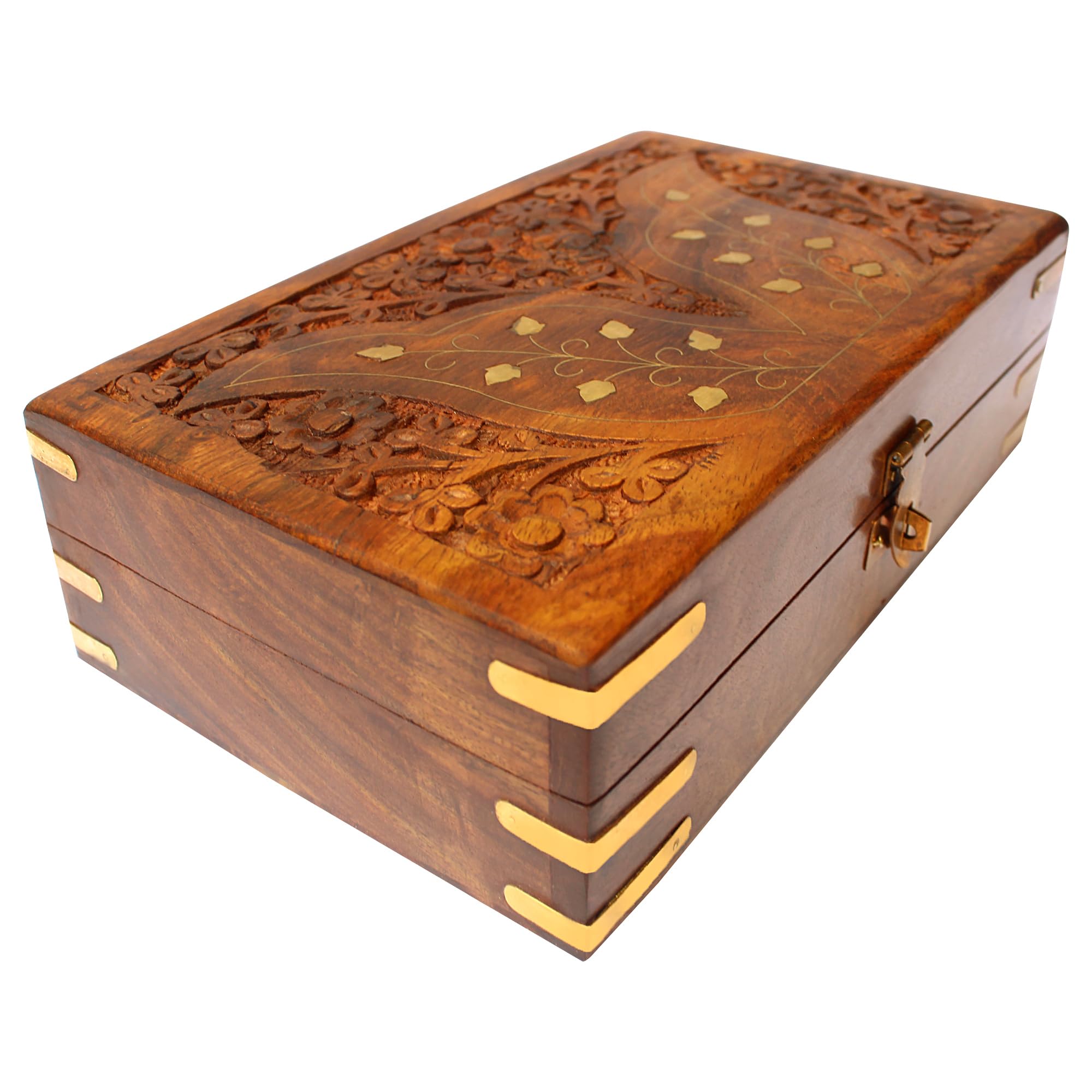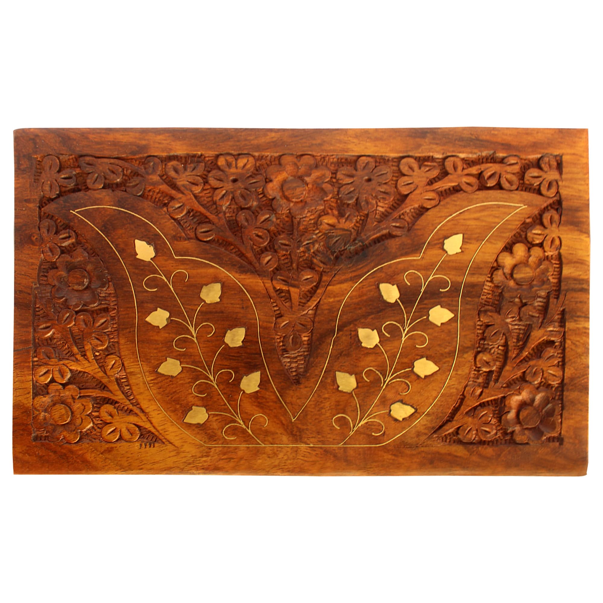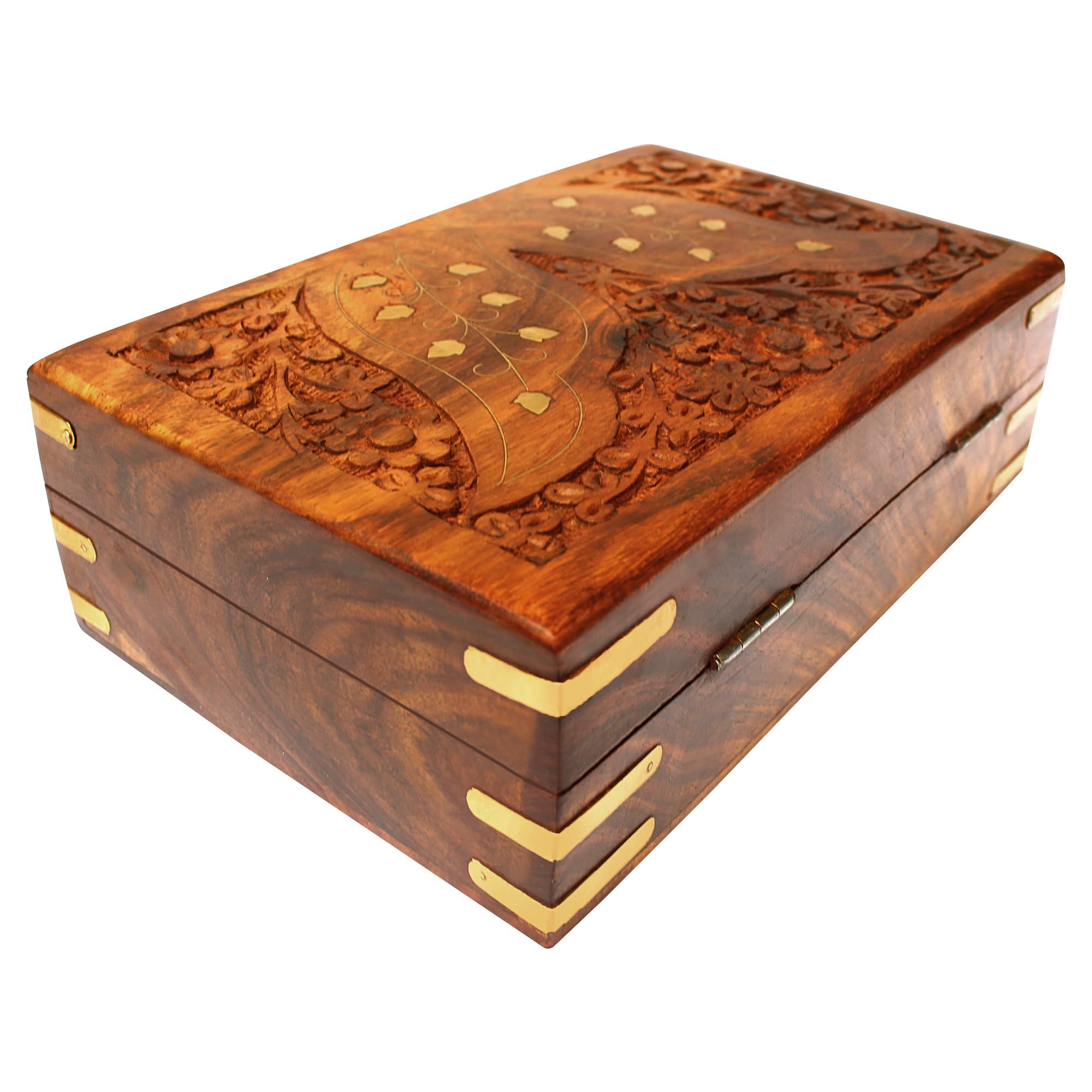 BIJNOR - METAL INLAY IN WOOD Jewellery Box for Women Wooden Brass Work Flower Carved Design Handmade Gift 8 Inches