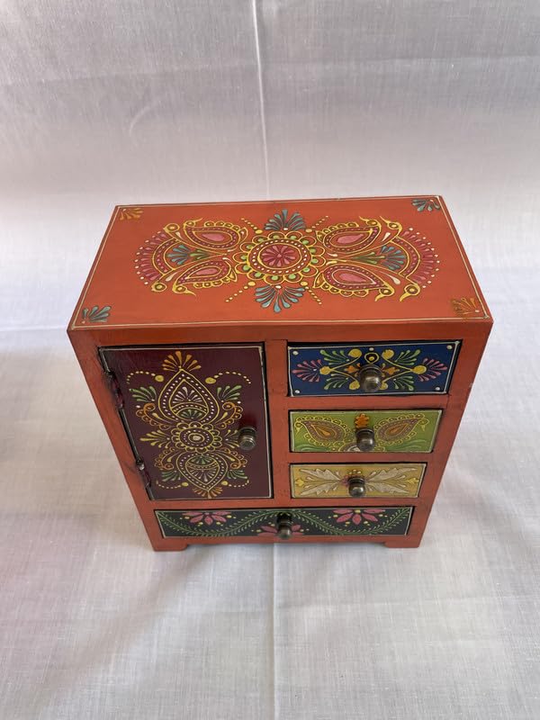 SACHIN ART Wooden vanity box, perfect for storing bangles and other cosmetic product. It comes with robust design, easy grip carry handle, faux creamy suede interior for a luxury finish and a number lock to keep your items safe and secure. A stunning vanity box crafted beautifully for professionals and perfect for home use. This gorgeous vanity box is made from high quality wooden which guarantees durability. The stylish handle also ensures easy transportation with its lightweight nature. not only complementing the hinges but provides ultimate security, for example when taking it away for the weekend, you know your anklet will be safe and secure. A must have for sorting bangles ,make up, beauty products, jewellery And More!
