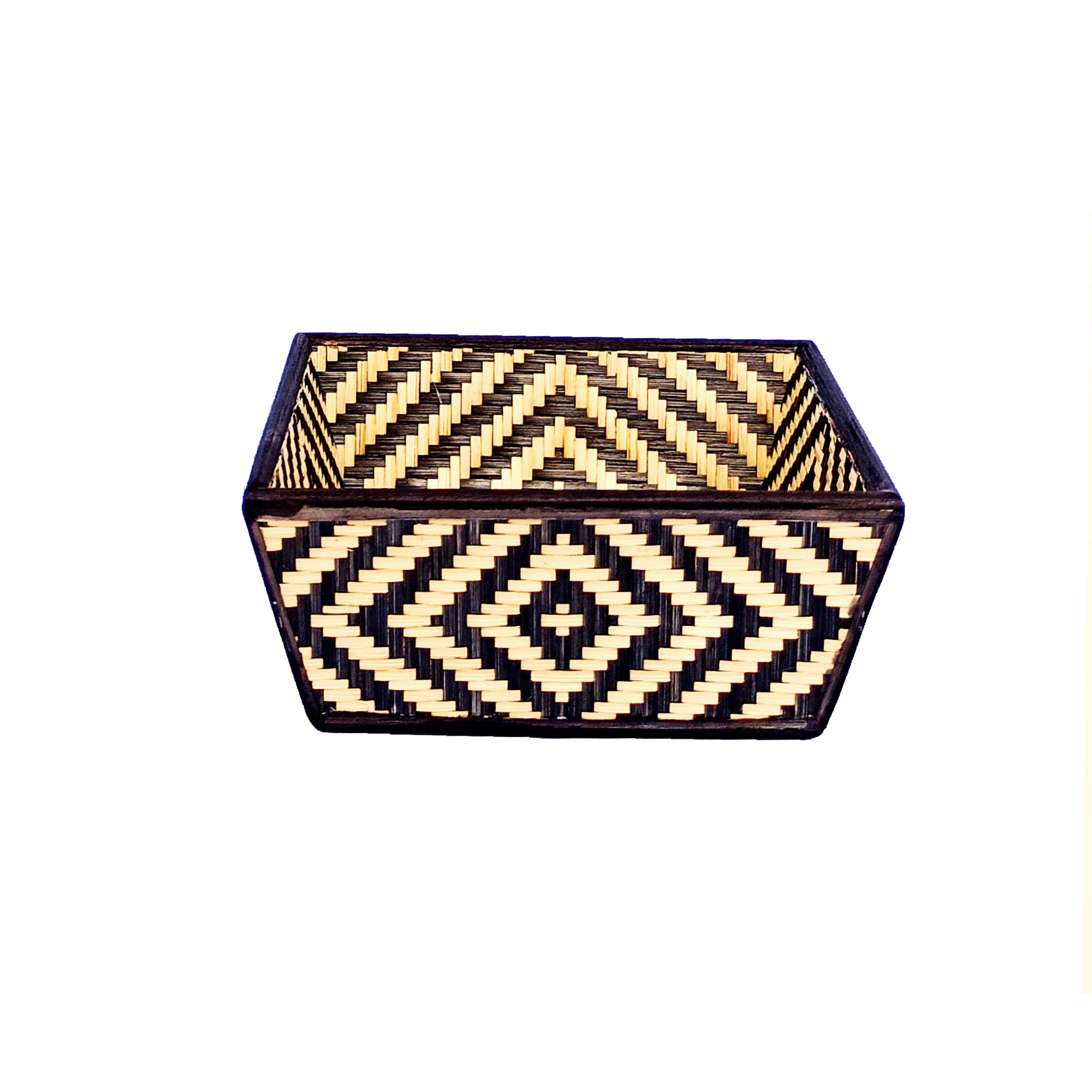 SIKKI CRAFT- HAAT products are all natural handcrafted & ENVIRONMENT FRIENDLY. This trendy and unique Square Sturdy Basket is made by cutting Bamboo the fastest growing Timber/grass and splitting the same into slivers by hand. These are dip dyed in earthen pots boiling them for hours till these completely take the LEAD FREE AZO FREE color. These painstakingly are woven into mats by the ladies in their homes & the men make the bamboo Ply for the sides of the Basket to make it Timber strong - completely by hand. It takes 1 whole day to make 1 pc. The craftsmen & Craftswomen of Purva Medinipur in West Bengal produce these as a team for creating SELF-SUSTAINANCE via HANDICRAFTS. After multiple trainings by the parent NGO SIKKI CRAFT the products are now available for you & even exported to other countries.