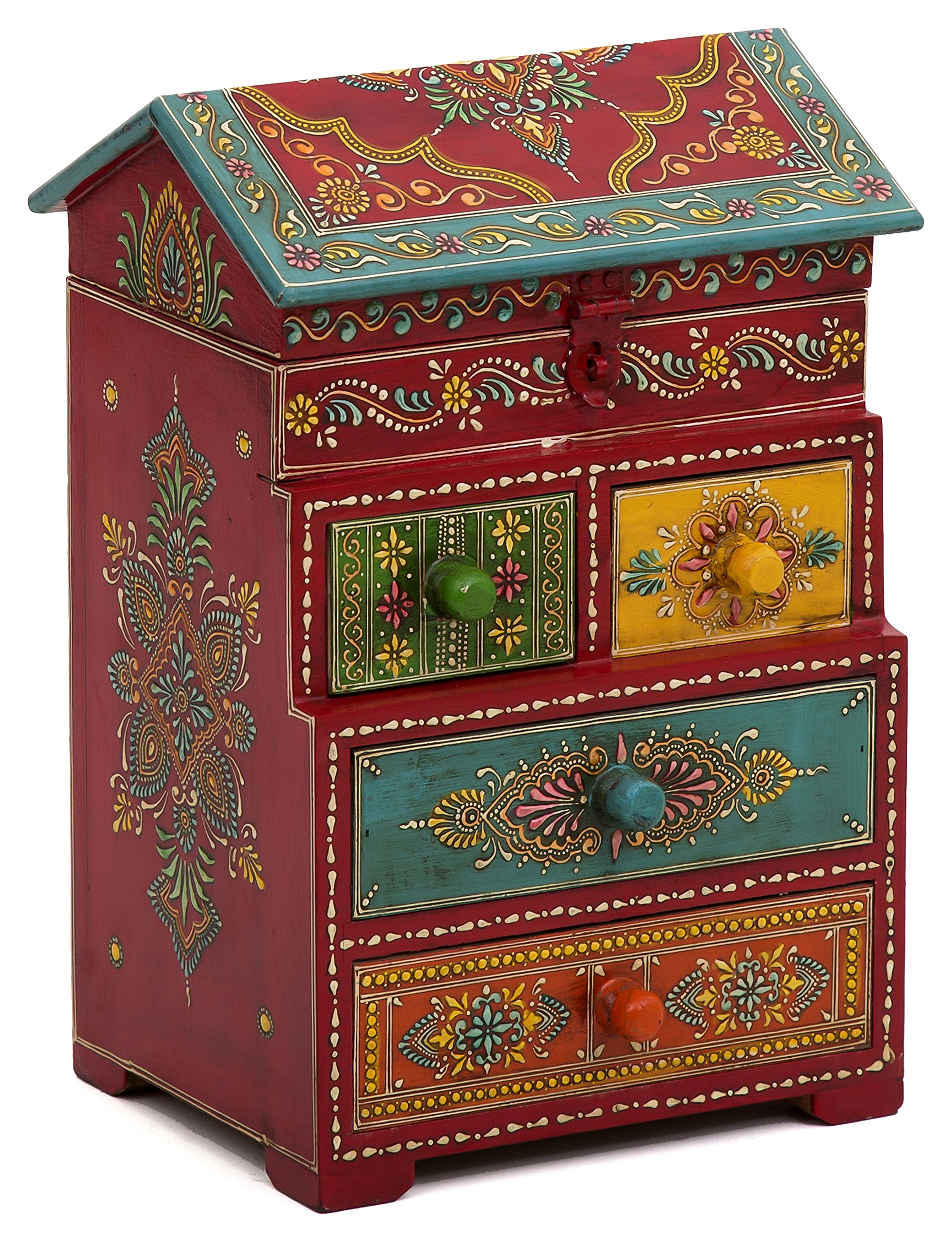 WOOD CRAFTS OF RAJASTHAN Wooden 5 Drawer Decorative Box (46.99 cm x 15.24 cm x 31.115 cm KE03)