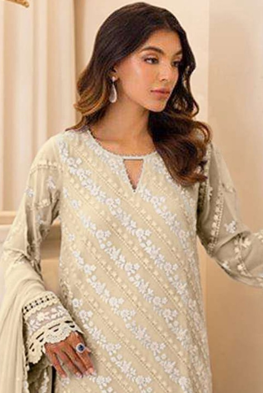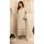 Beige embroidered sequence work heavy fox georgette unstitched suit with zarkan