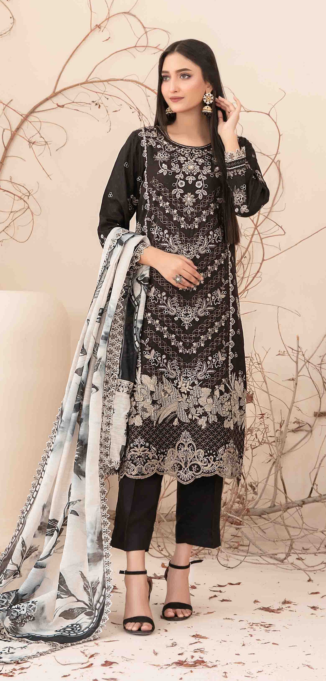 Black Embroderied Cotton Semi-Stitched Salwar Suit