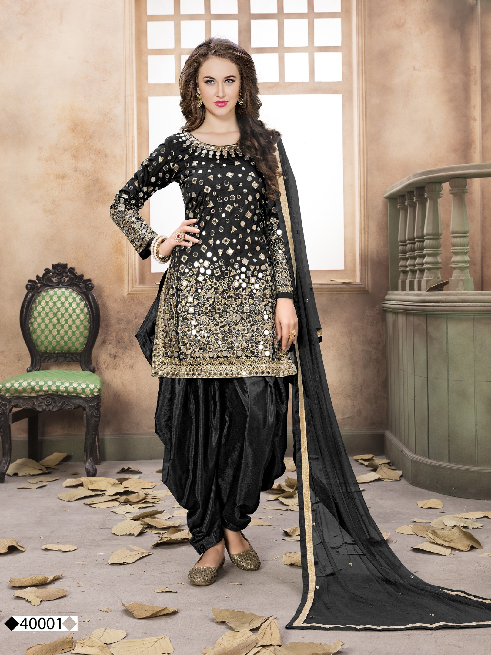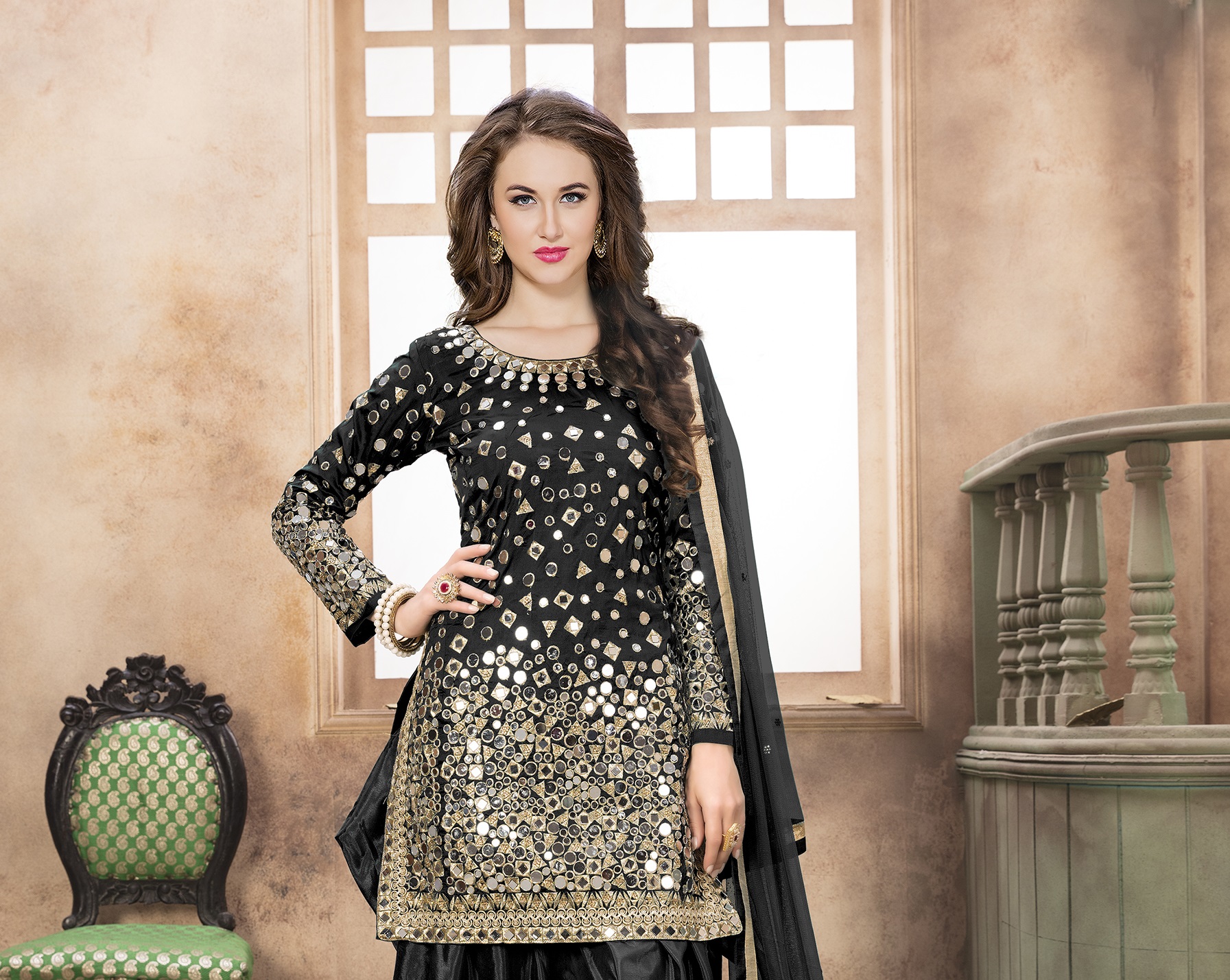 Black Embroidered Tapeta Silk Semi Stitched Salwar Suit
