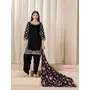 Black Premium Embroidered Roman Silk Semi Stitched Salwar Suit