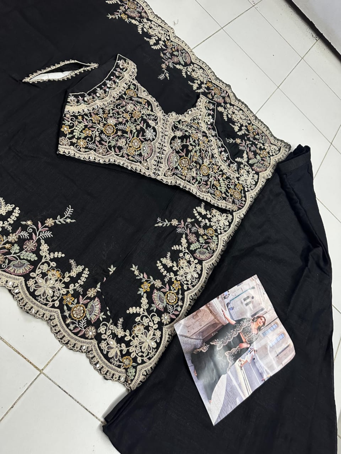 Black Real Premium Silk Stitched Shrug Suit with Embroidery Work