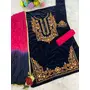 Black-red embroidery sequence & thread work velvet semi stitched salwar suit