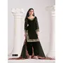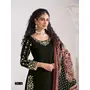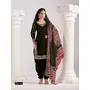 Black Roman Silk Semi Stitched Suit with Embroidery & Real Mirror Work