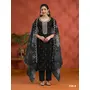 Black Silk Embroidered Viscose Thread Jari work Semi Stitched Salwar Suit