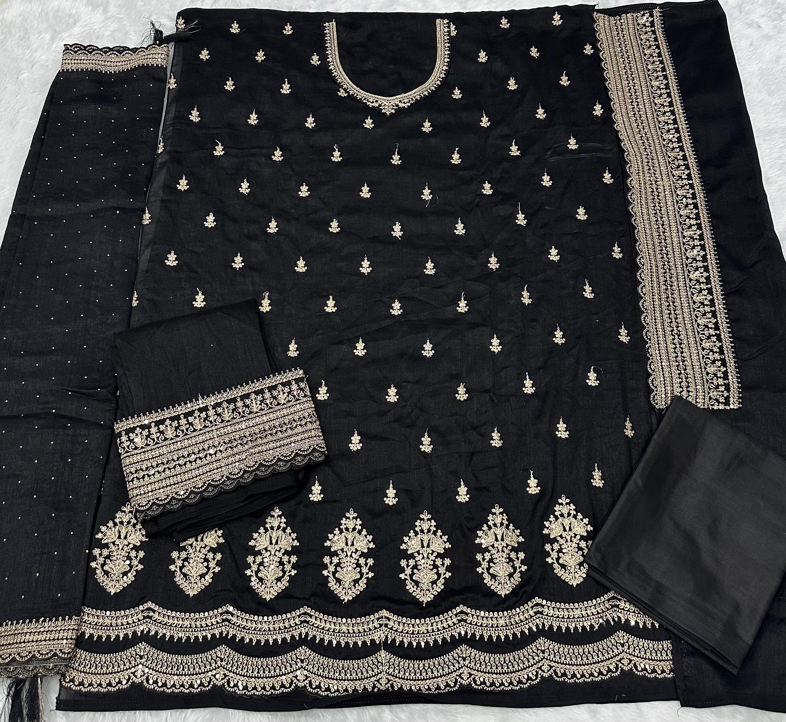 Black Silk Georgette Semi Stitched Suit with Embroidery Sequence Work