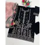 Black Velvet Semi Stitched Suit with Embroidery Sequence Work