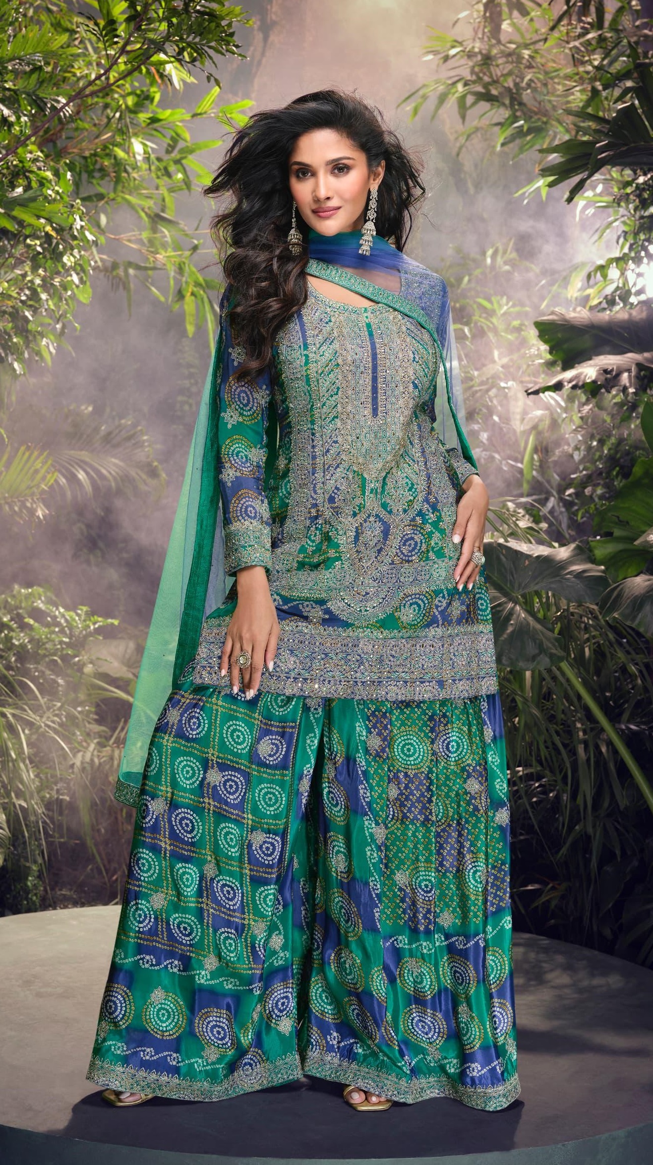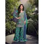 Blue Chinon Free Size Stitched Suit with Embroidery & Sequence Work