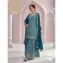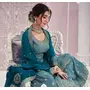 Blue Chinon Sequence Embroidered Readymade Salwar Suit (Free Size)