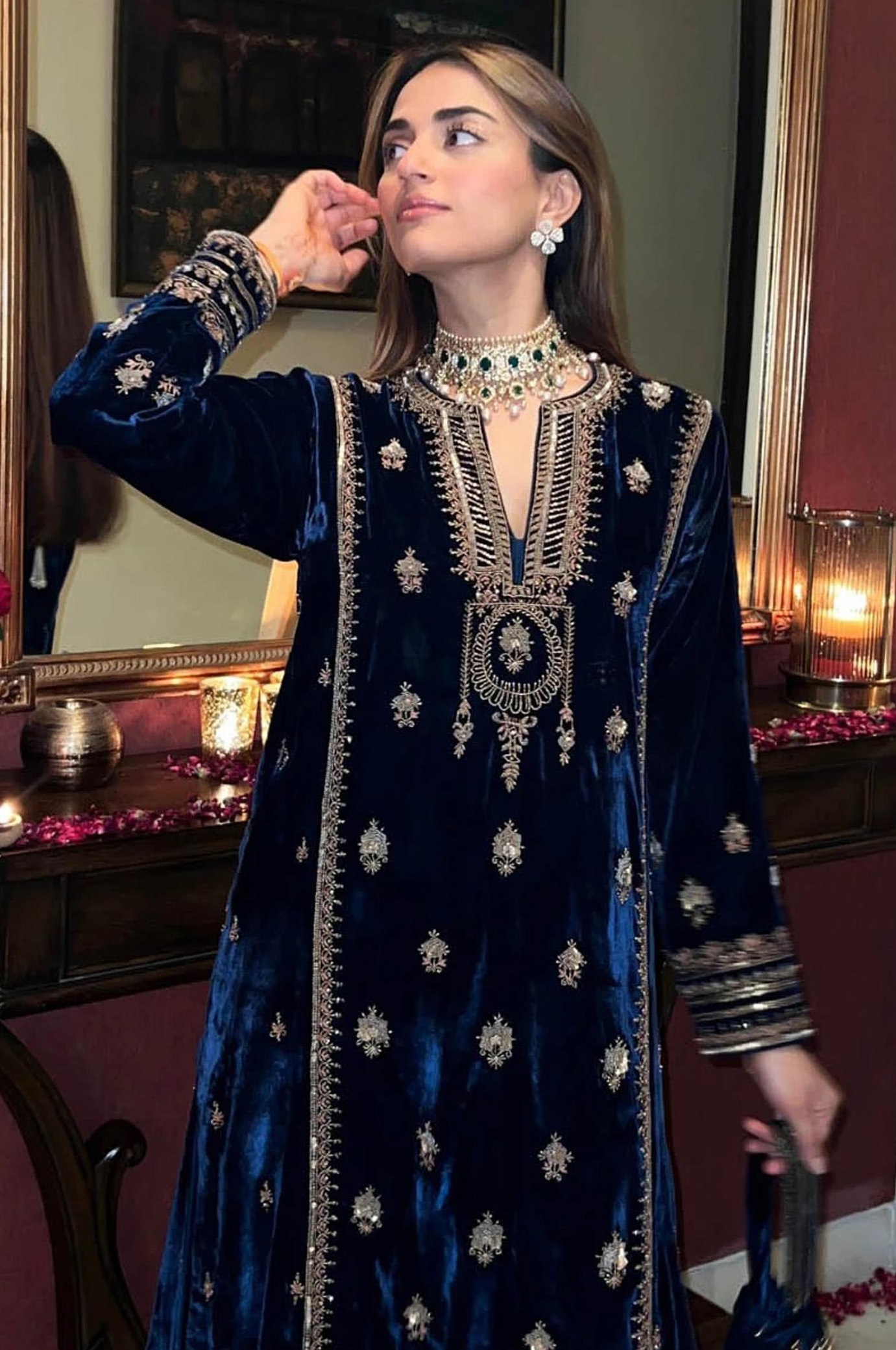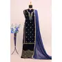 Blue Embroidered 9000 Velvet Semi Stitched Salwar Suit