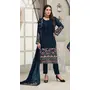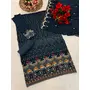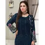 Blue Embroidered Faux Georgette Semi Stitched Sharara Suit