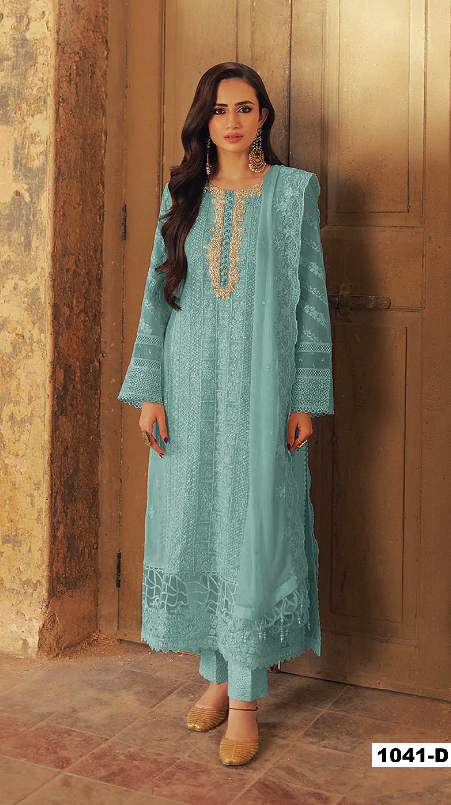 Blue Georgette Semi Stitched Suit with Sequence & Multi Thread Work