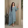Blue Heavy Natural Crepe Semi Stitched Suit with Embroidery & Zarkhan Work