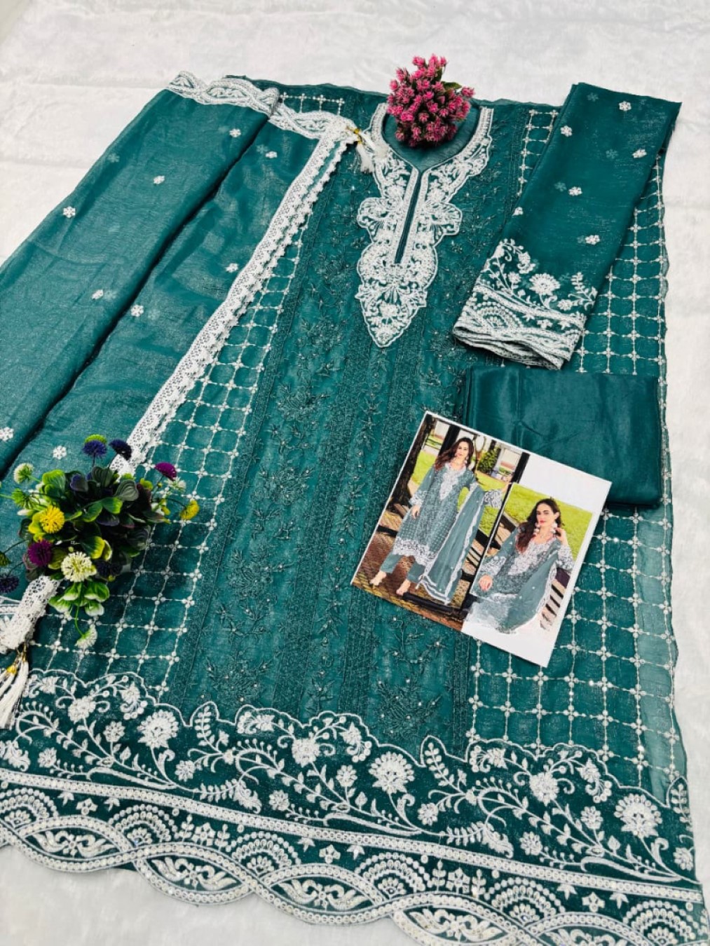 Blue Silk Semi Stitched Suit with Embroidery Sequence Work