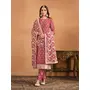 Brown Embroidered Faux Georgette Semi Stitched Salwar Suit