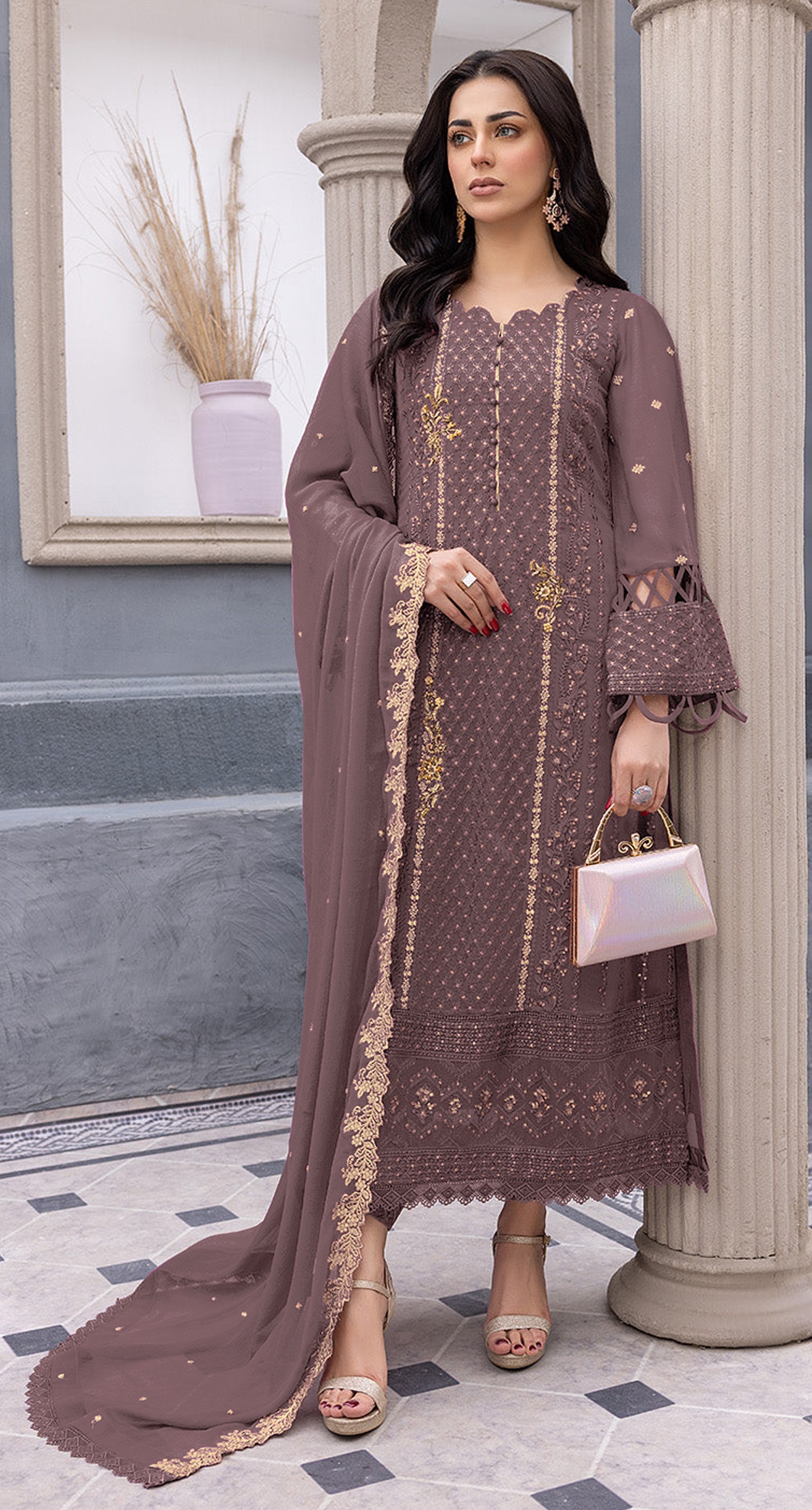 Brown Embroidered Faux Georgette Semi Stitched Salwar Suit