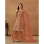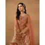 Brown Embroidered Net Semi Stitched Salwar Suit