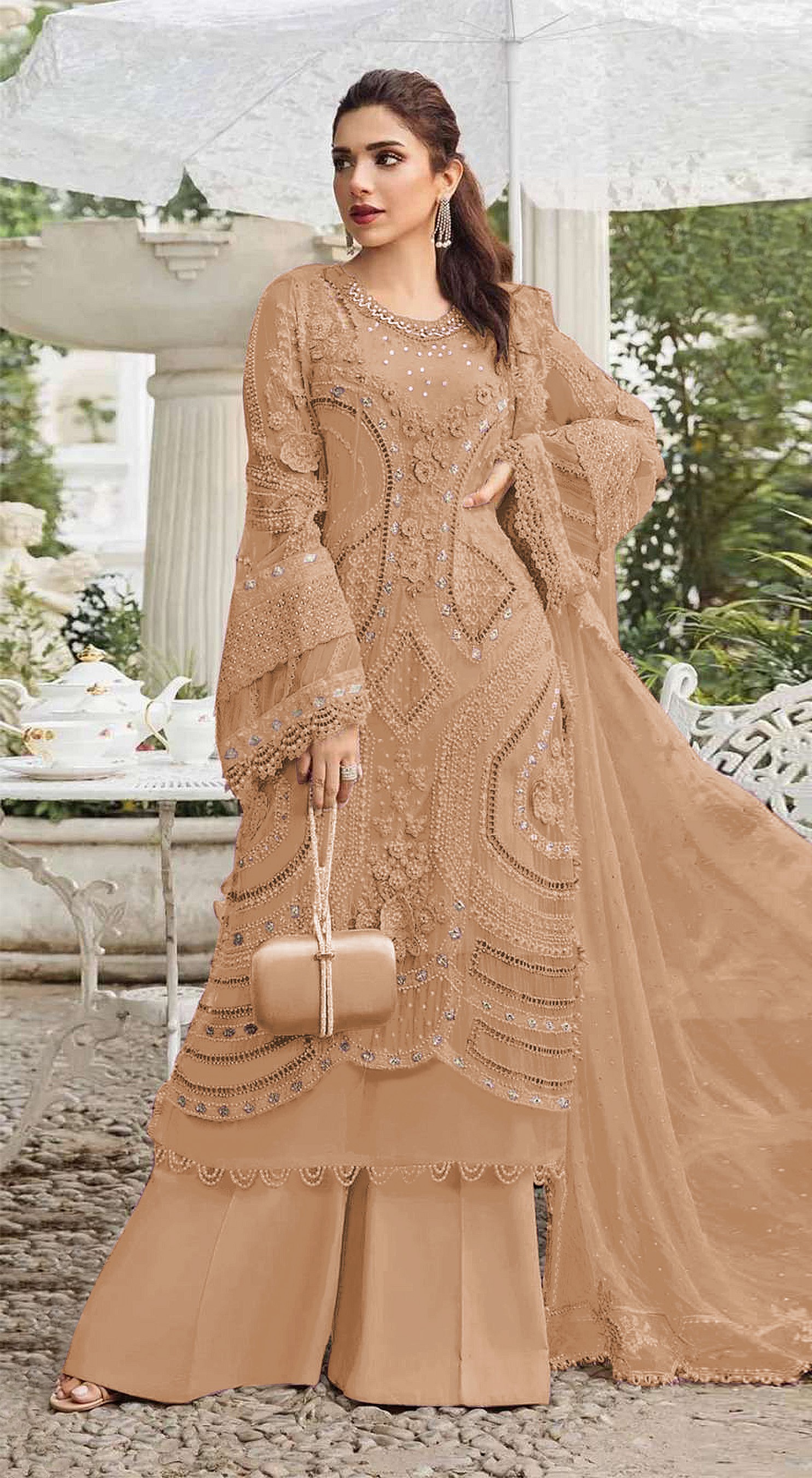 Brown Georgette Semi Stitched Suit with Embroidery Sequence & Moti work