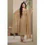 Brown Heavy Natural Crepe Semi Stitched Suit with Embroidery & Zarkhan Work