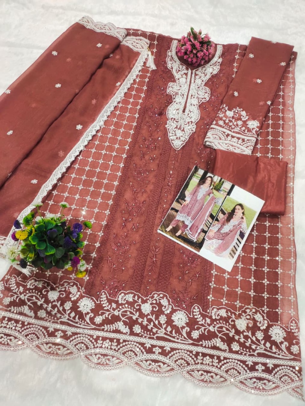Brown Silk Semi Stitched Suit with Embroidery Sequence Work