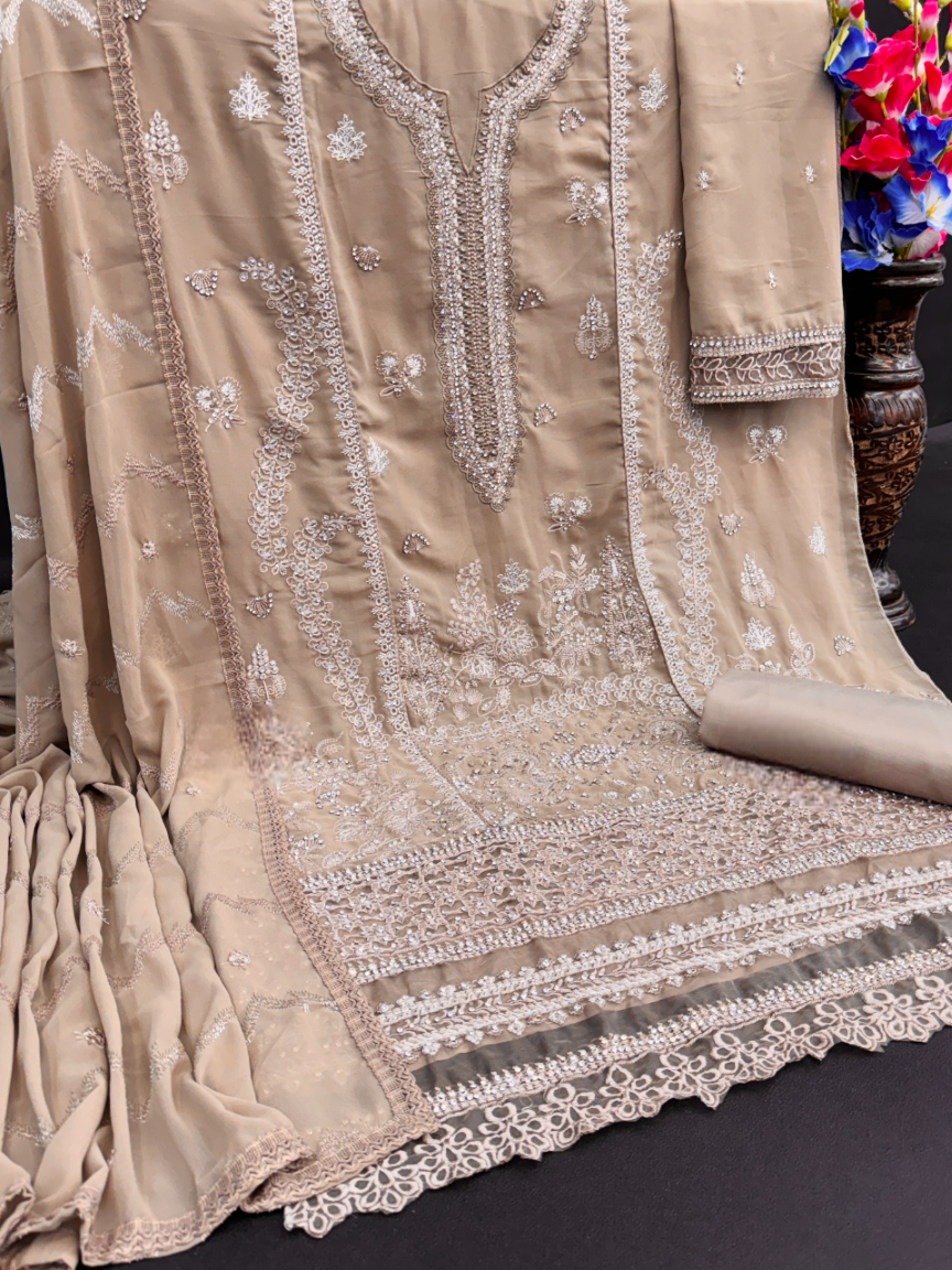 Chiku Embroidered Faux Georgette Semi Stitched Salwar Suit