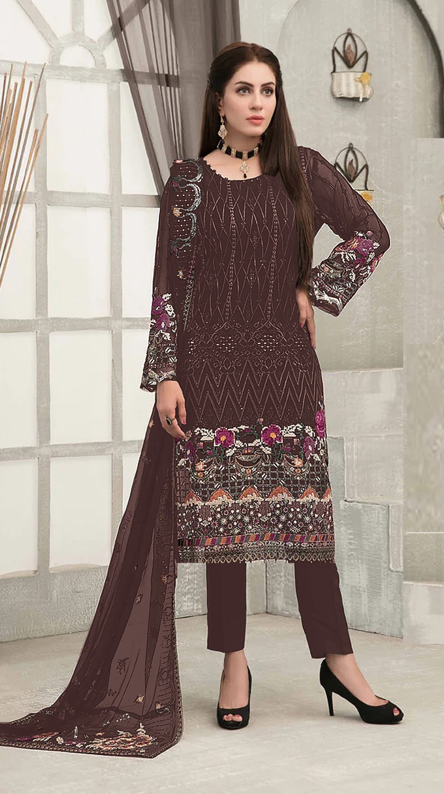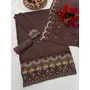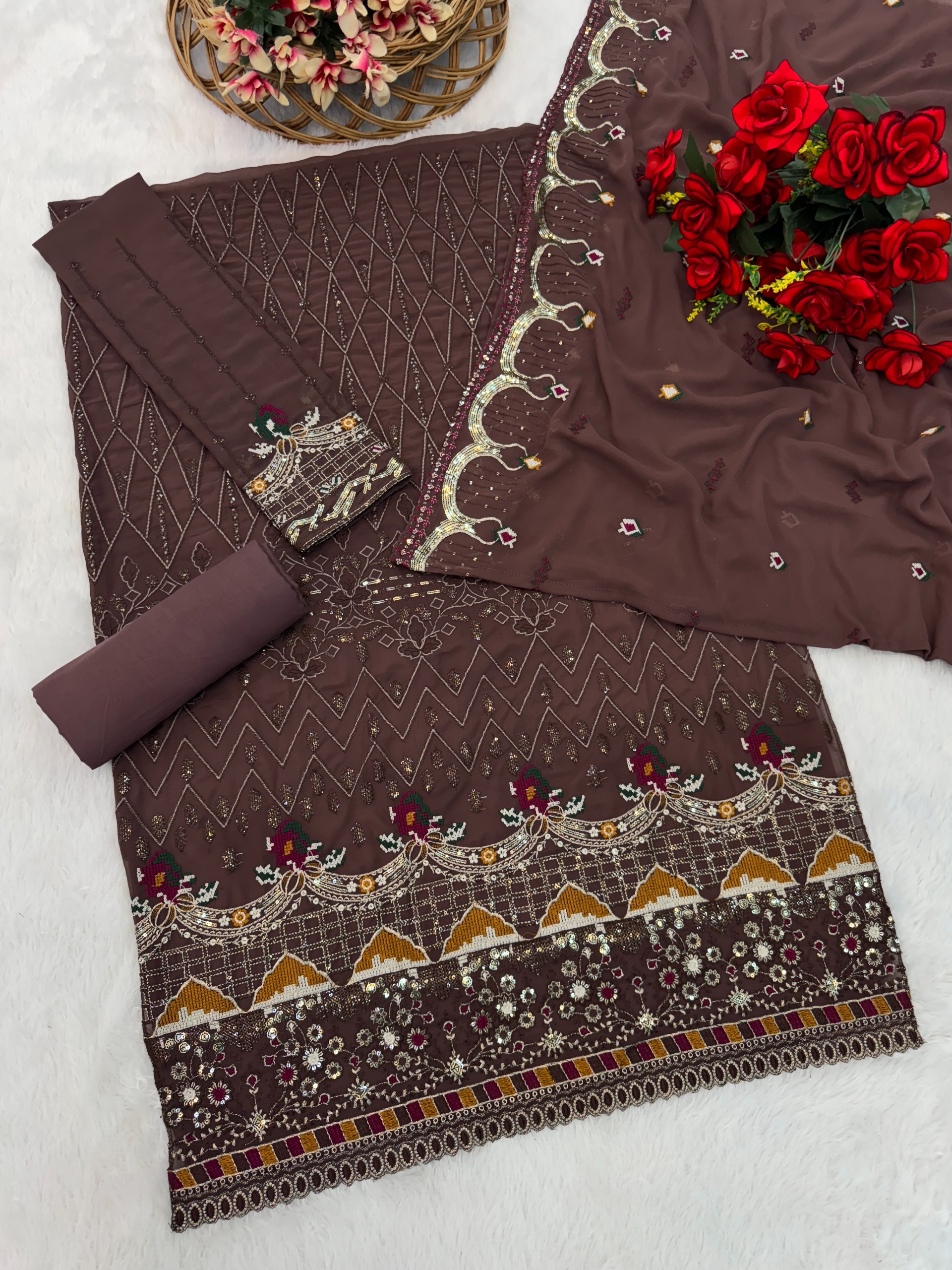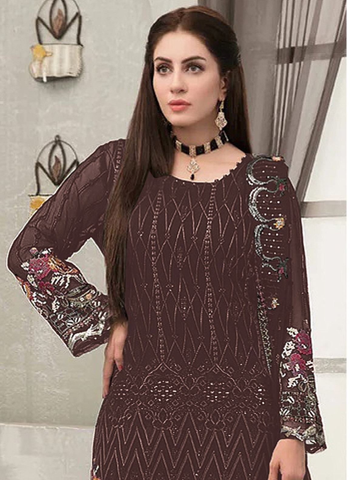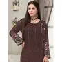 Coffee Embroidered Faux Georgette Semi Stitched Sharara Suit