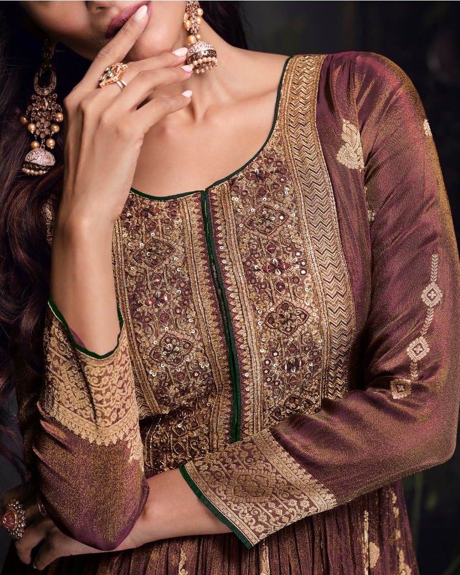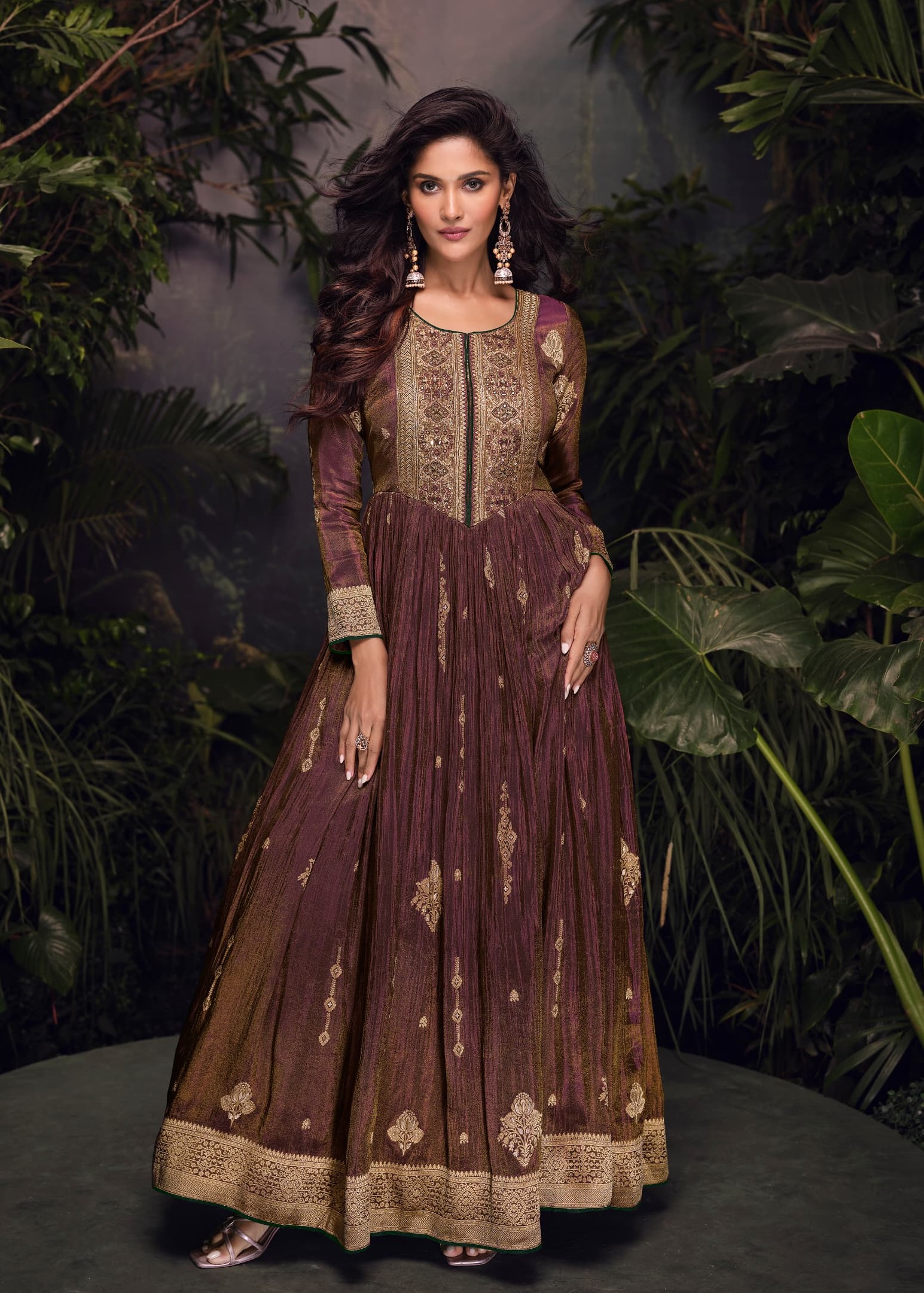 Coppar Viscose Simar Jacquard Stiched Hand Made Khatli Work Anarkali Gown (Free Size)