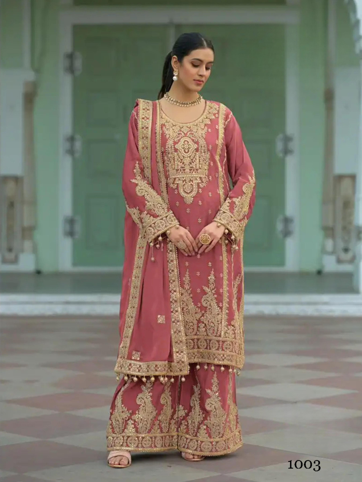 Coral Heavy Chinon Readymade Plazzo Suit with Heavy Embroidery Work