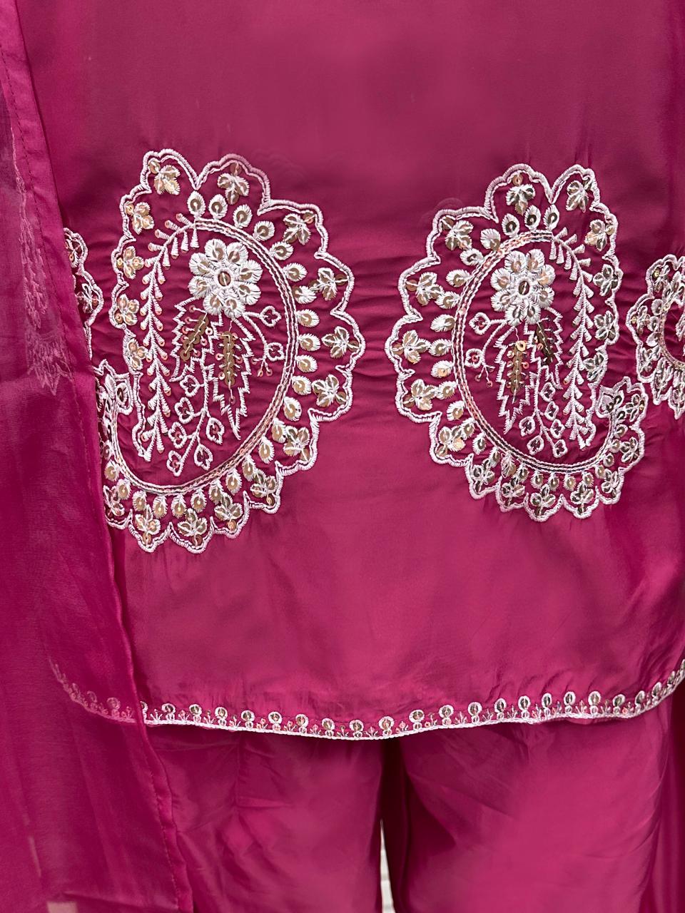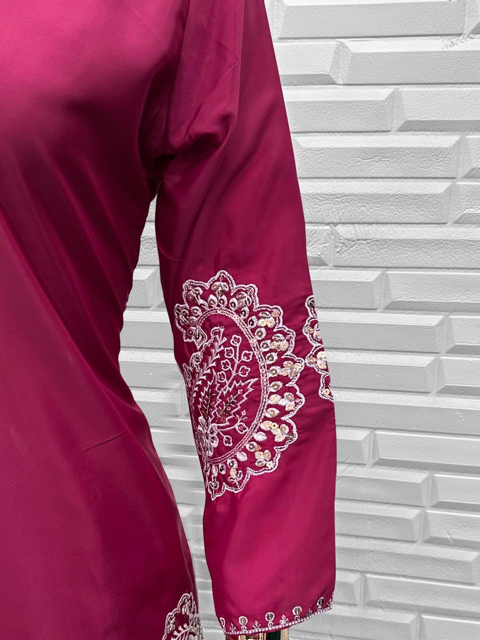 D Magenta Crape Readymade Salwar Suit with Embroidery Work