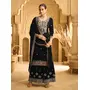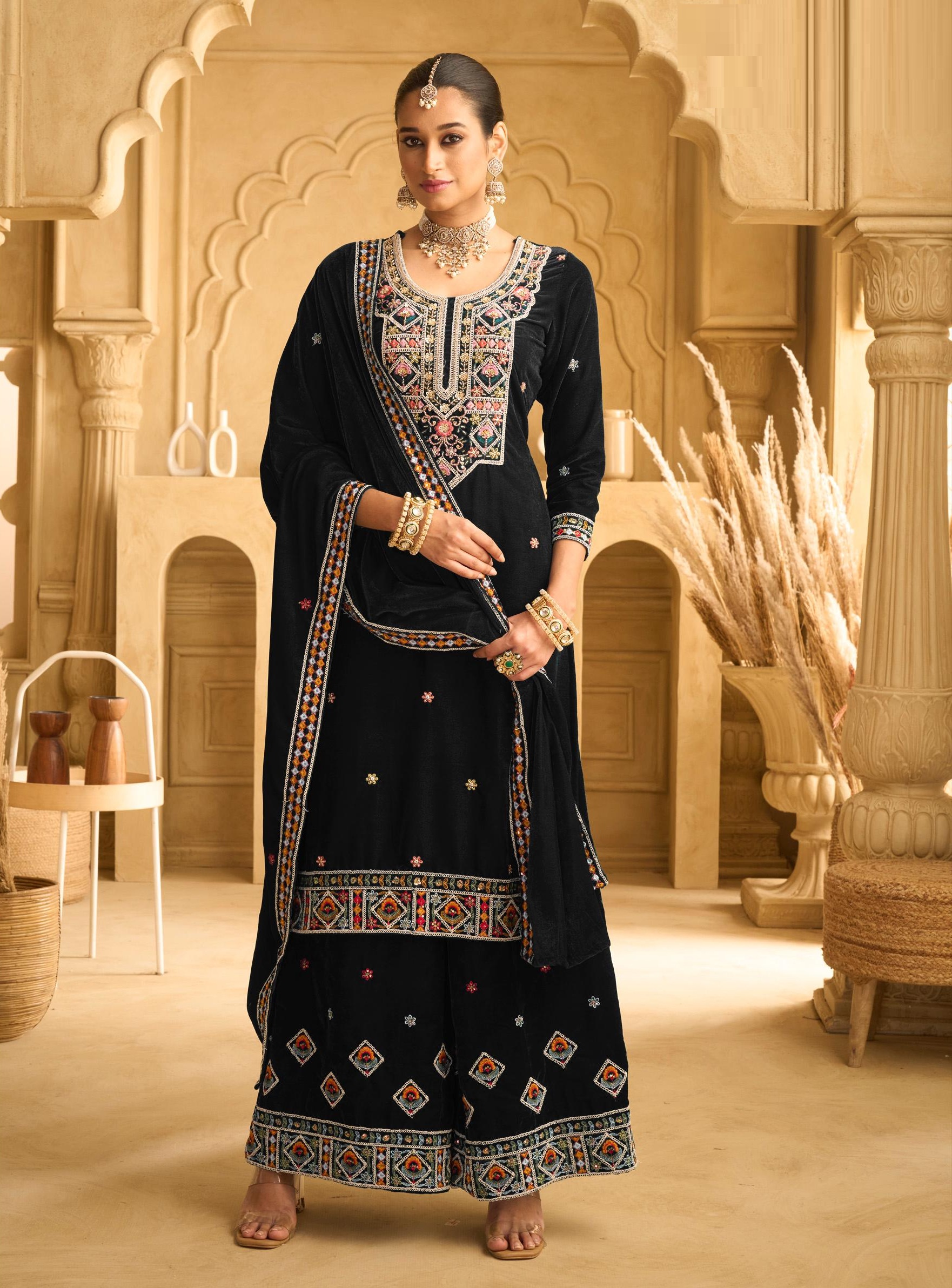 Dark Blue Embroderied with beads Velvet Semi-Stitched Plazo Suit