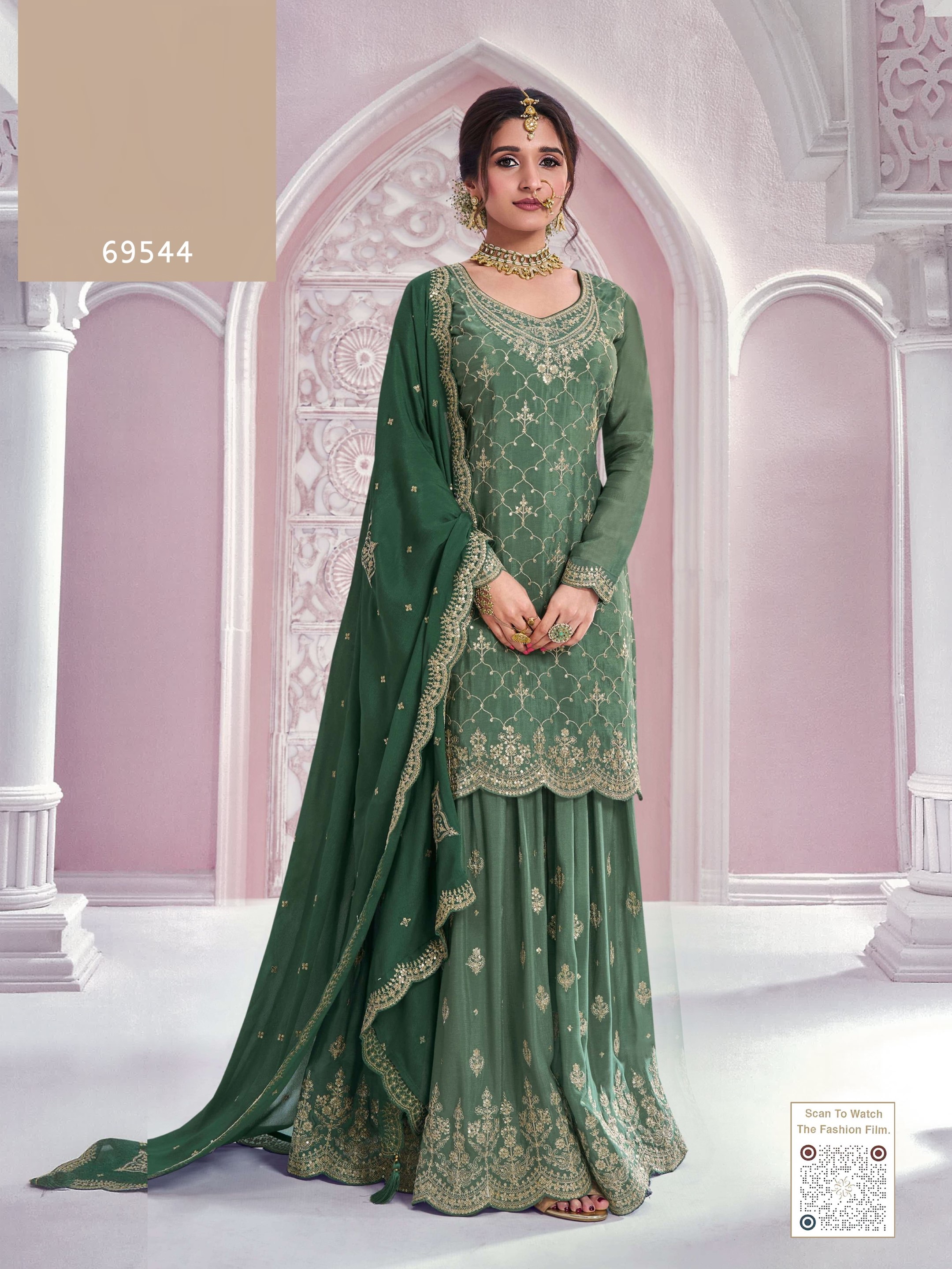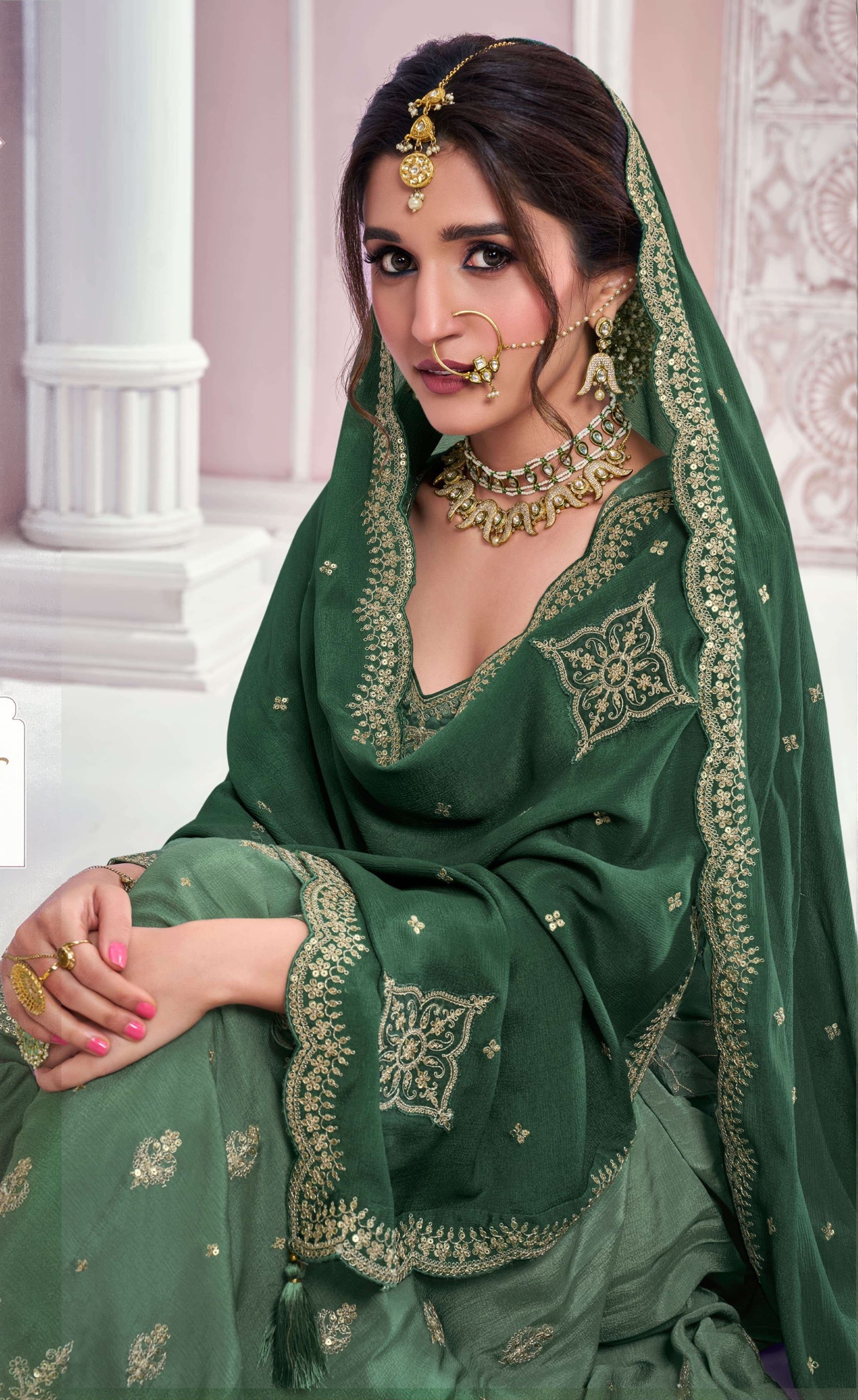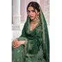 Dark Green Chinon Sequence Embroidered Readymade Salwar Suit (Free Size)