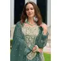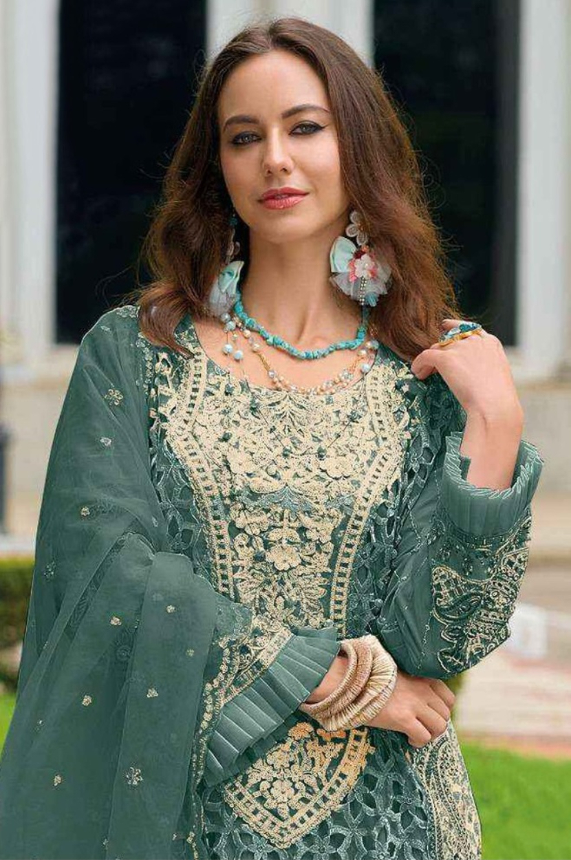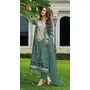 Dark Green embroidered sequence cut work heavy organza unstitched suit with moti & Frill