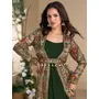 Dark Green heavy fox georgette free size anarkali shrug suit with silk print