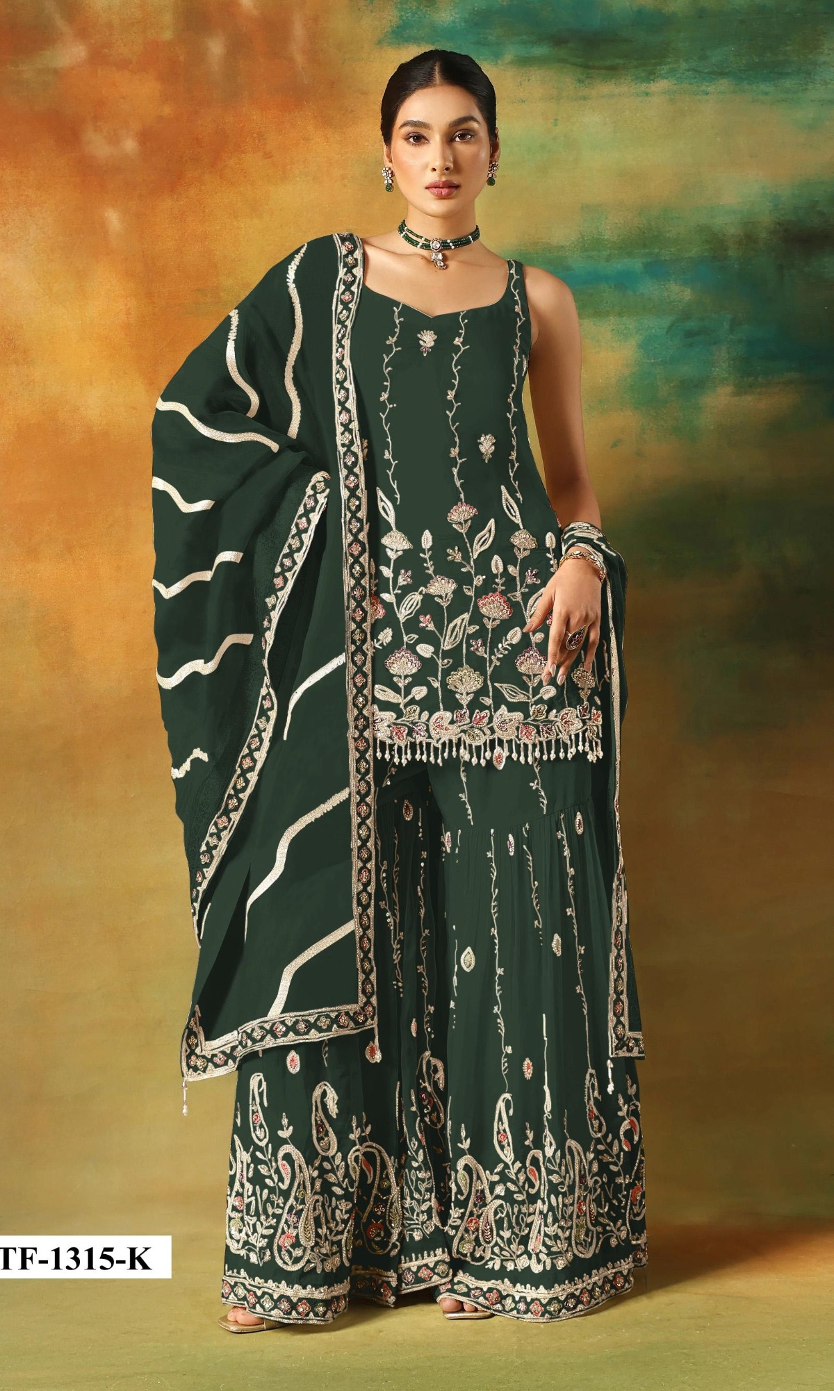 Dark Green Heavy Fox Georgette Semi Stitched Suit With Embroidery Work