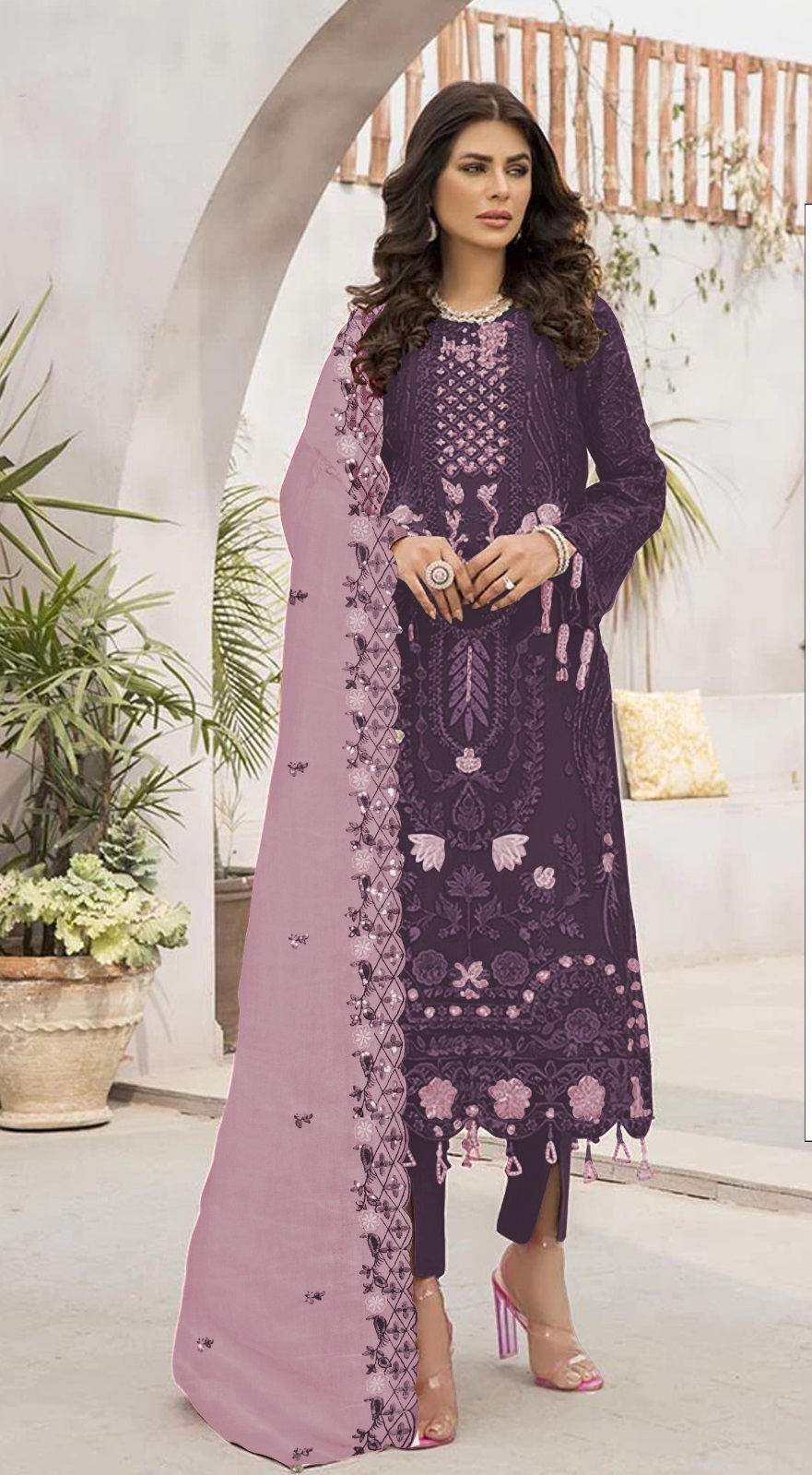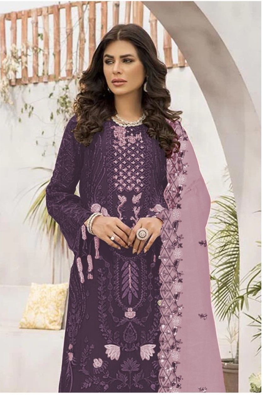 Dark Purple Embroidered Faux Georgette Semi Stitched salwar Suit