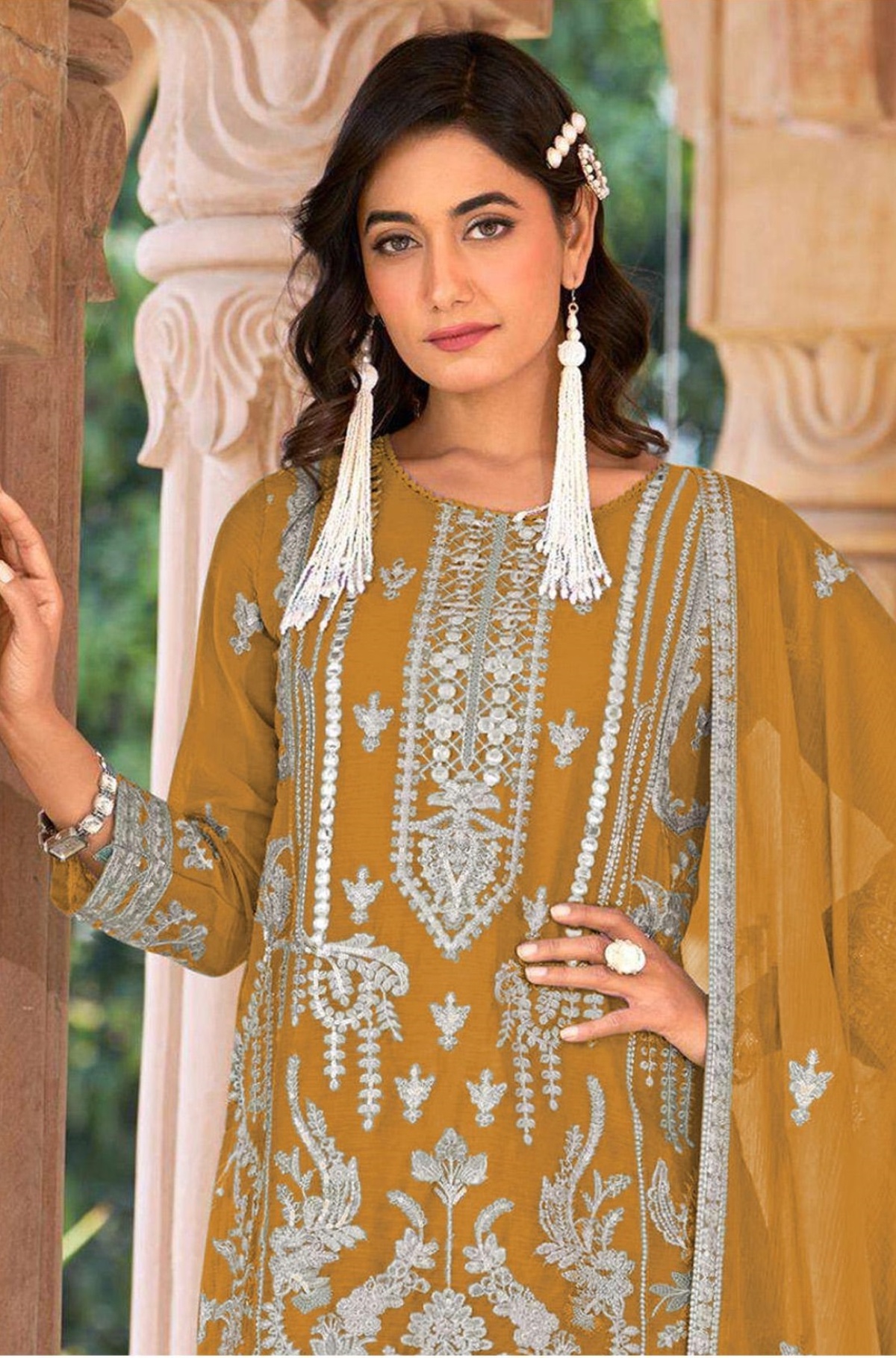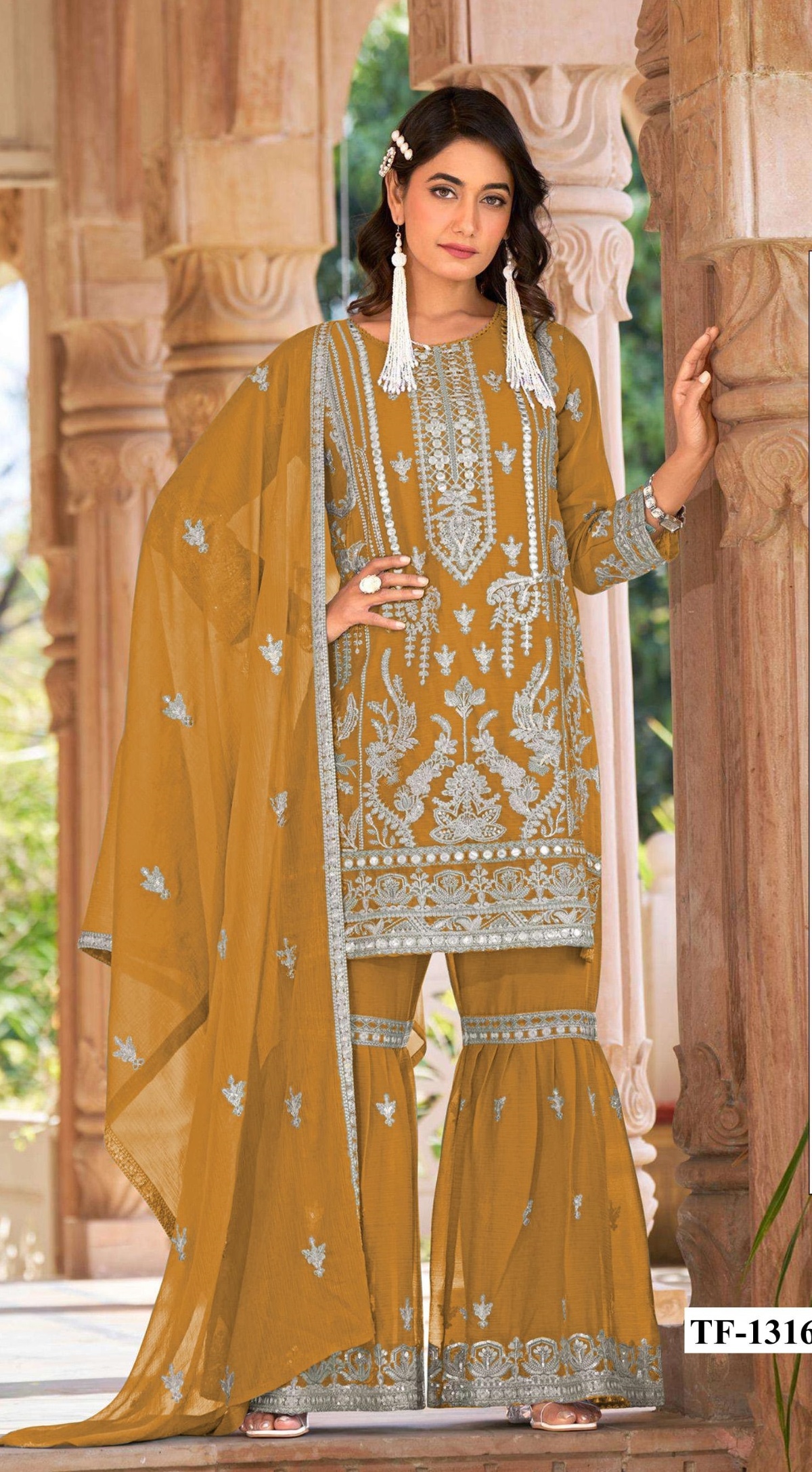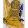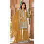 Gold Naylon Organza Semi Stitched Suit With Embroidery & Mirror Work