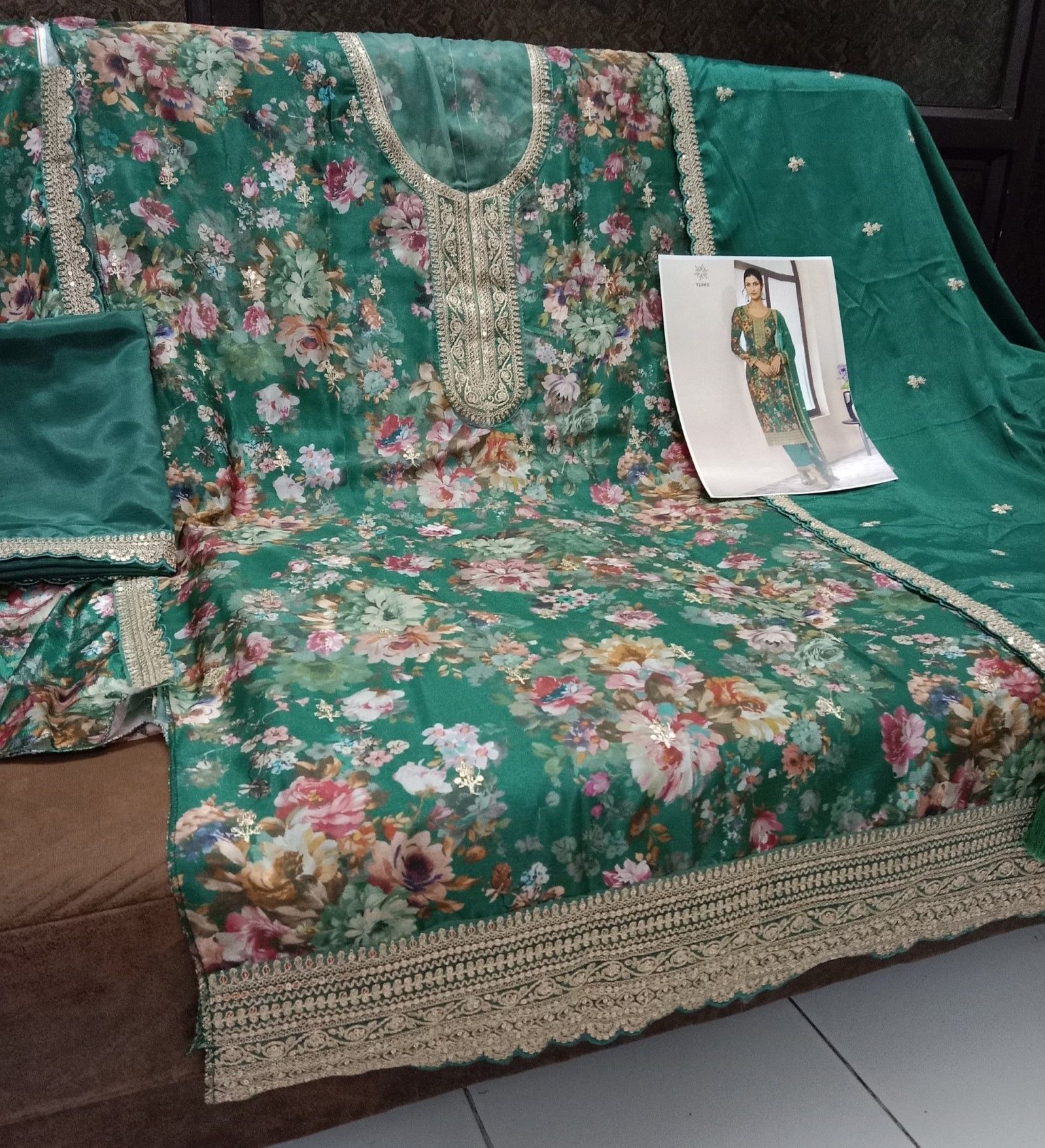 Green Chinon Digital Print Sequence Embroidered Semi-Stitched Salwar Suit
