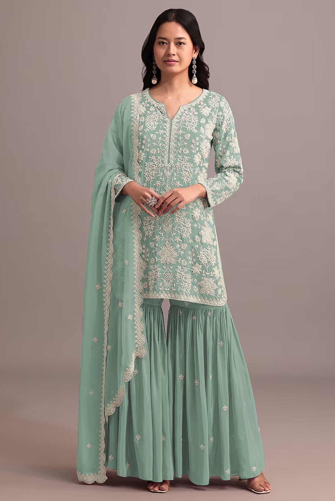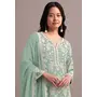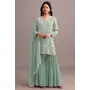 Green Embroidered Faux Georgette Semi Stitched Sharara Suit