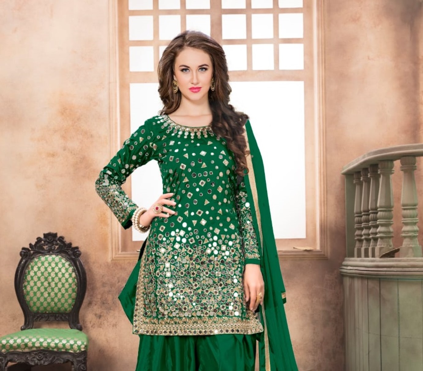 Green Embroidered Tapeta Silk Semi Stitched Salwar Suit