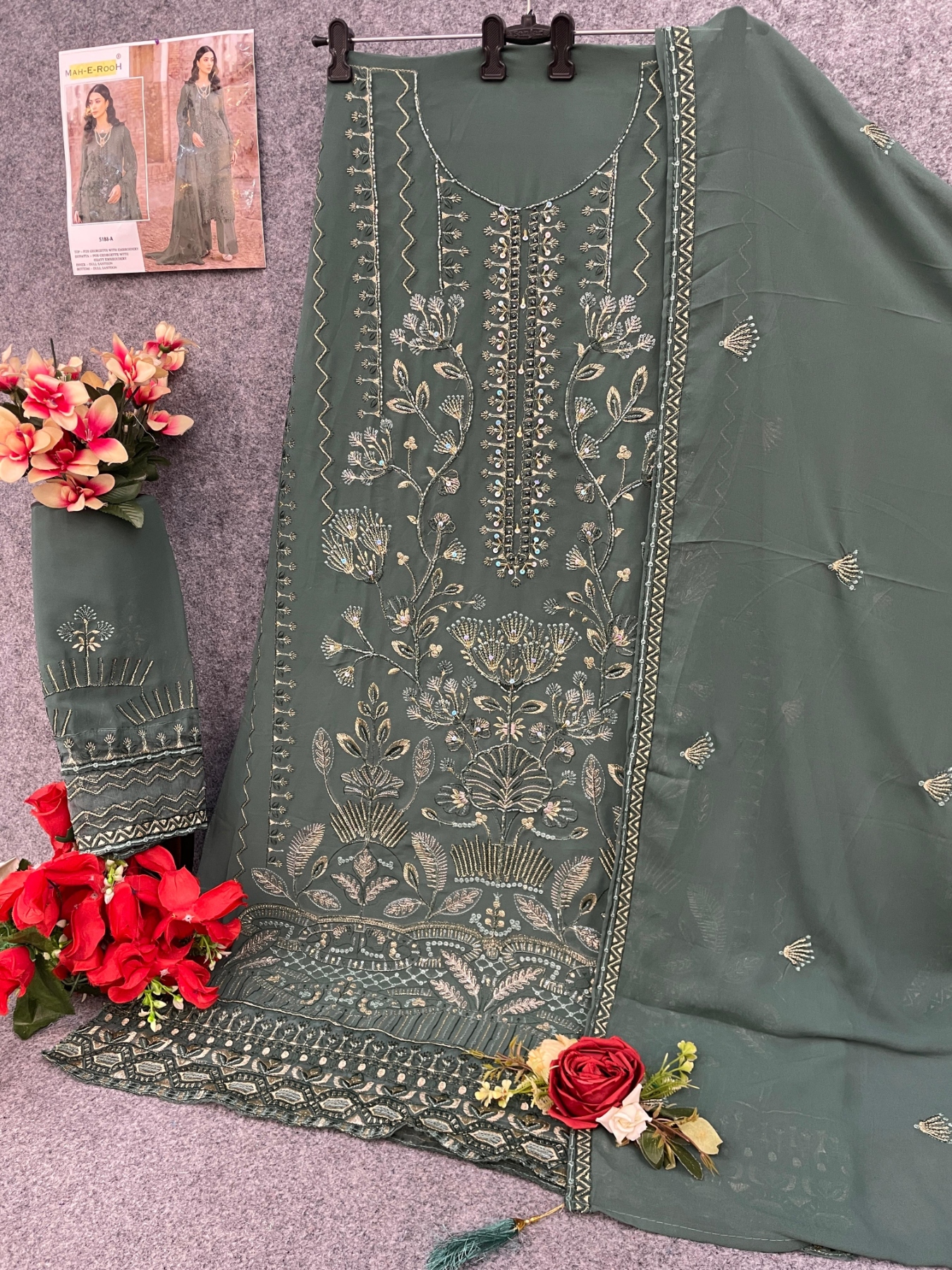 Green Faux Georgette Semi Stitched Suit with Embroidery Work