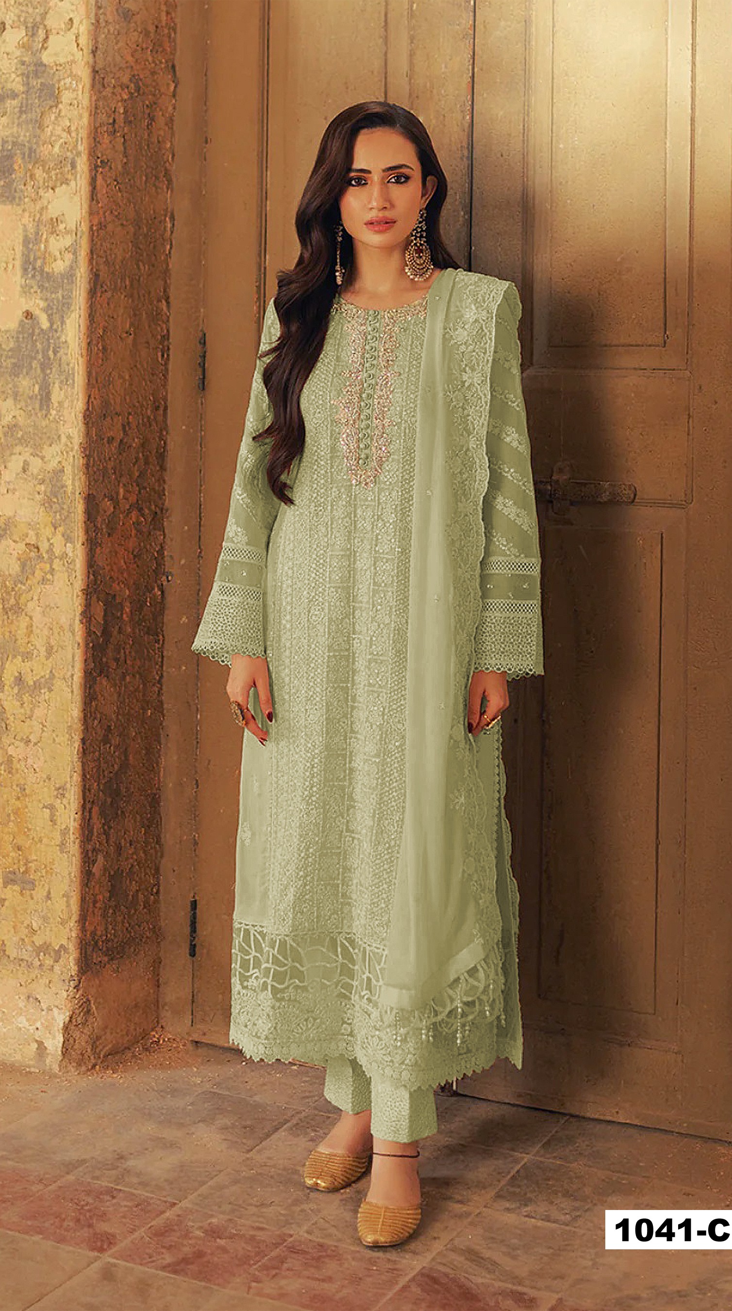 Green Georgette Semi Stitched Suit with Sequence & Multi Thread Work