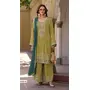 Green Heavy Chinon Semi Stitched Suit With Embroidery Bits Work