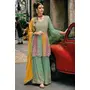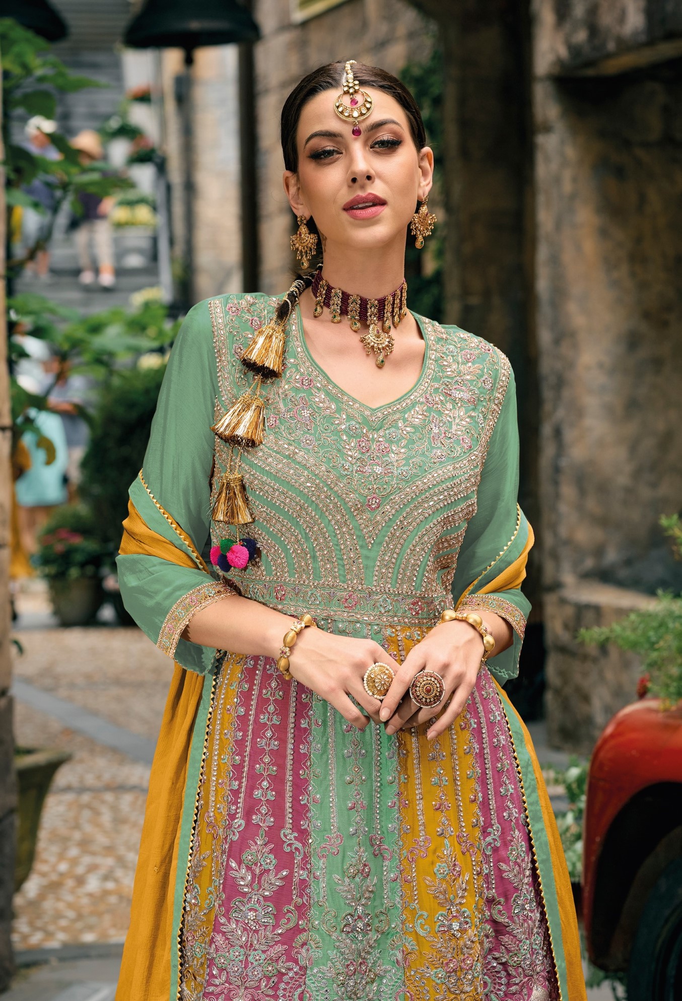 Green Real Gerogette Sequence Embroidered Readymade Salwar Suit (Free Size)