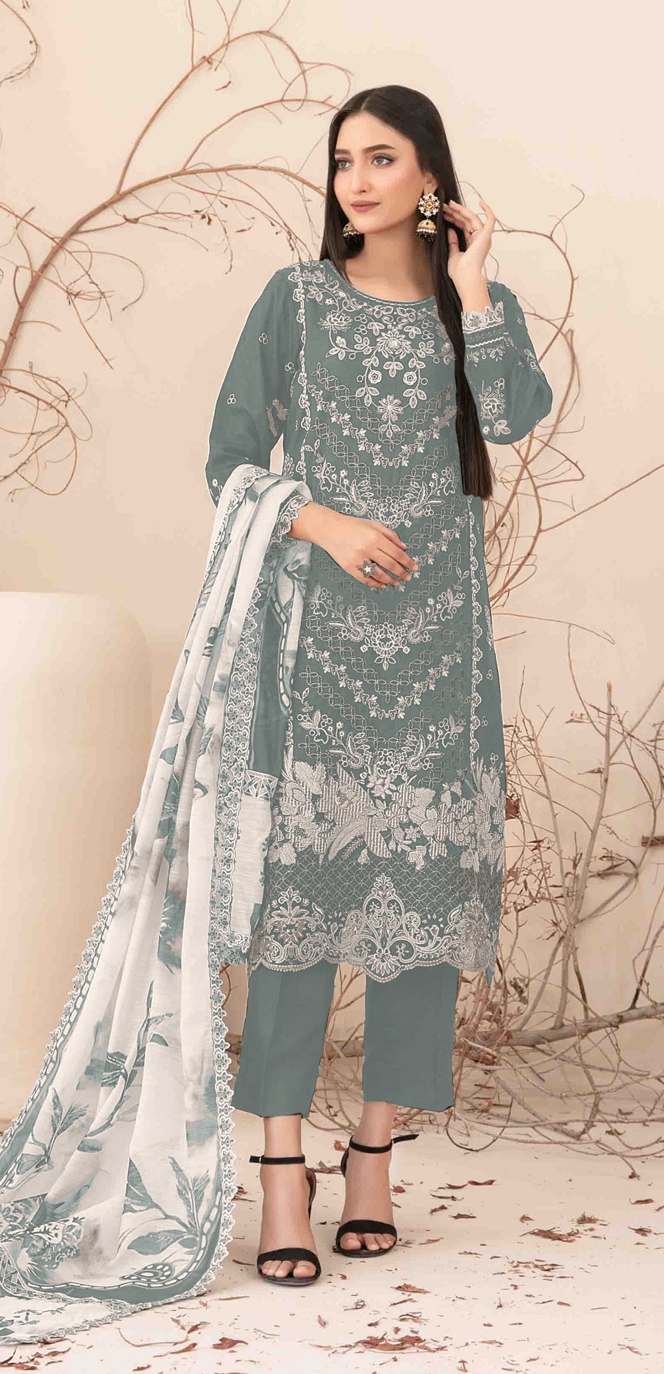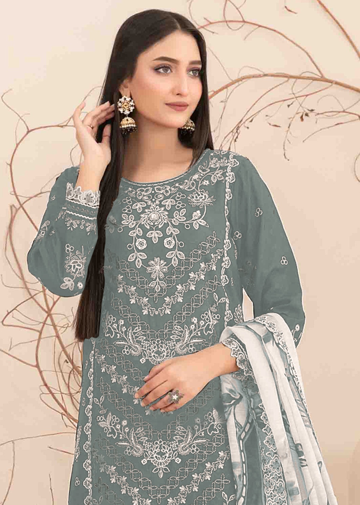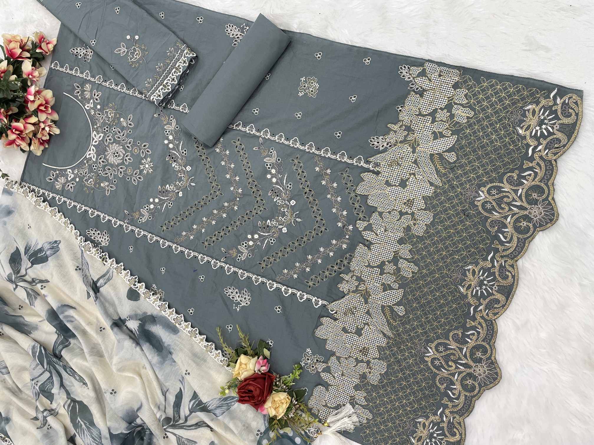 Grey Embroderied Cotton Semi-Stitched Salwar Suit