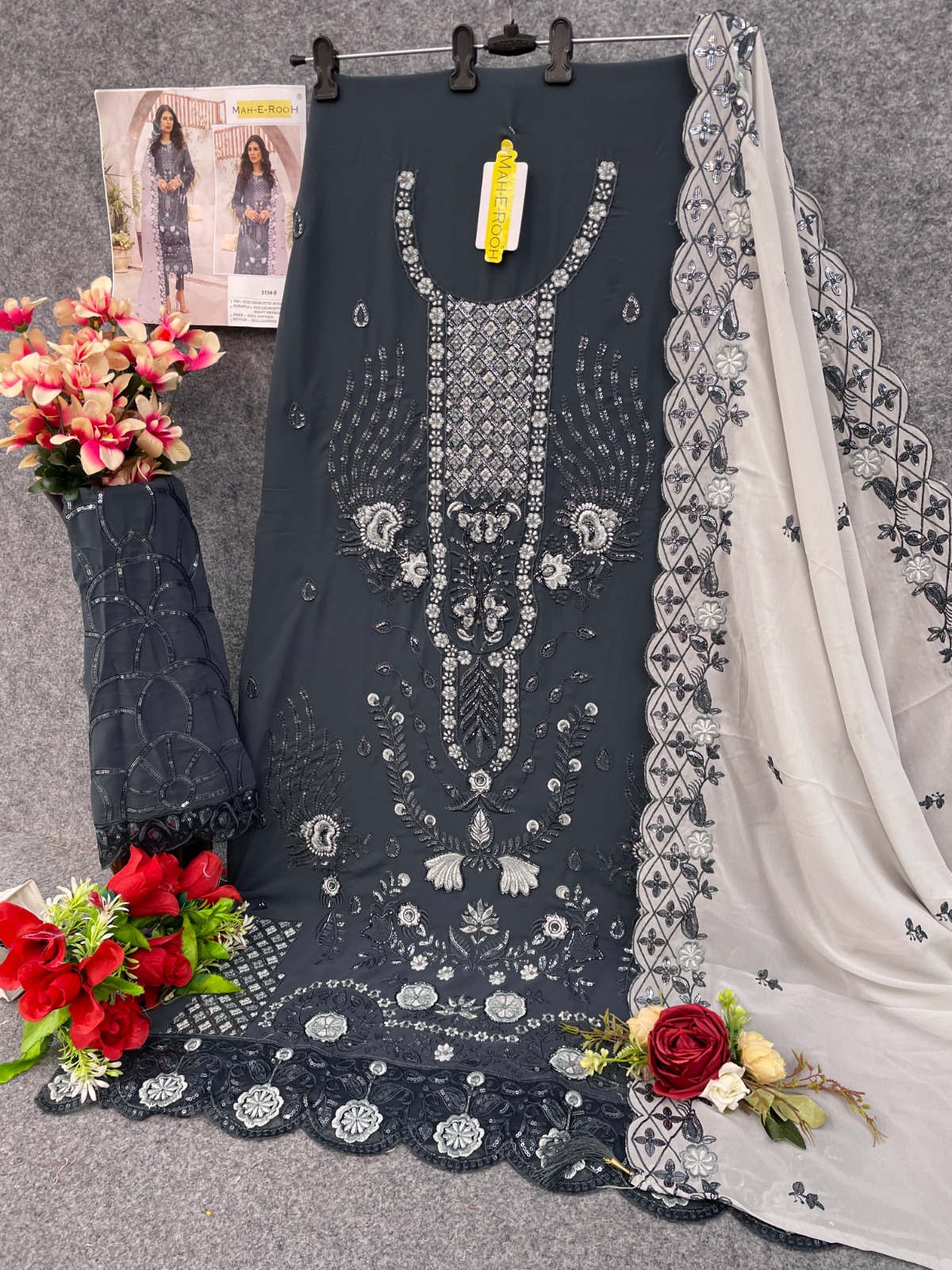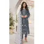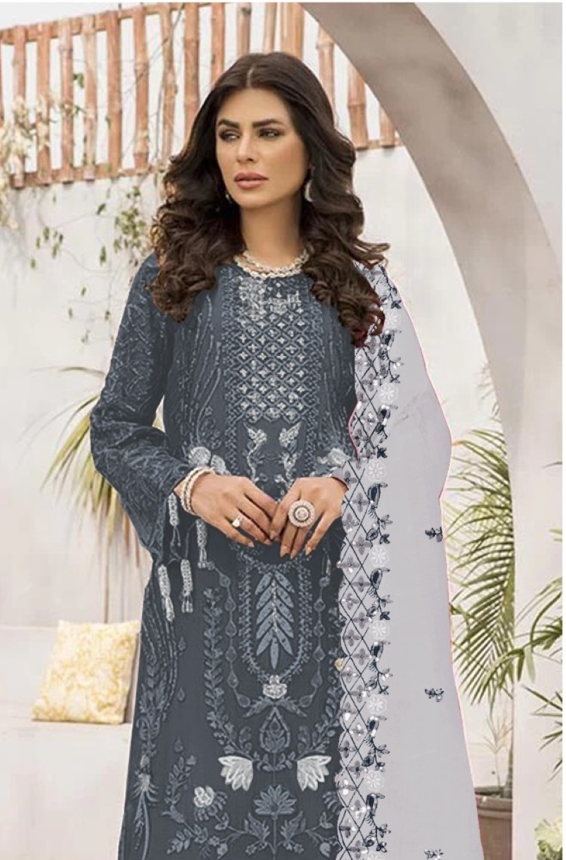 Grey Embroidered Faux Georgette Semi Stitched salwar Suit